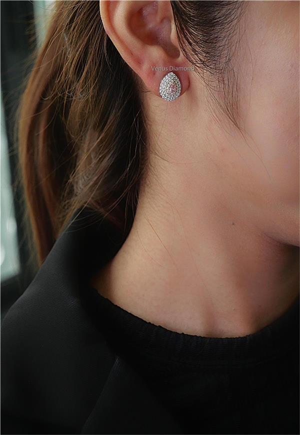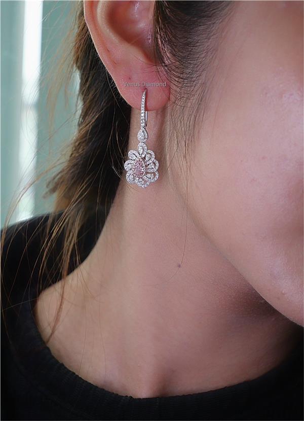 ต่างหูเพชร Pear 0.36 ct+0.33 ct สี Very Light Pink/Faint Pink ใบเซอร์ GIA