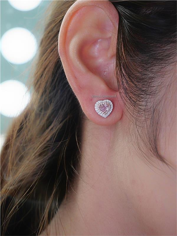 ต่างหูเพชร Heart 0.35 ct+0.34 ct สี Very Light Pink ใบเซอร์ GIA