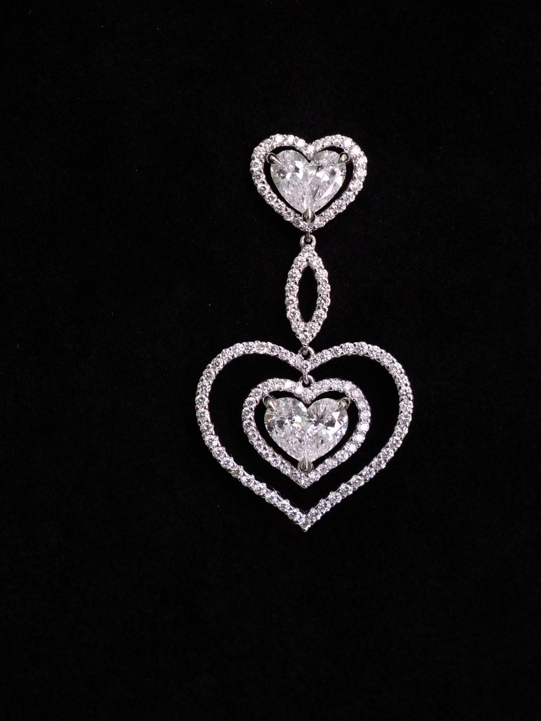 ต่างหูเพชร ประกบ ทรง Heart 2.07 ct สี F ความสะอาด VVS1 GIL