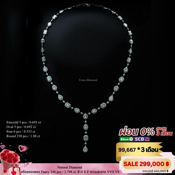 สร้อยคอเพชร น้ำหนักเพชรรวม 3.798 ct สี D E F ความสะอาด VVS VS