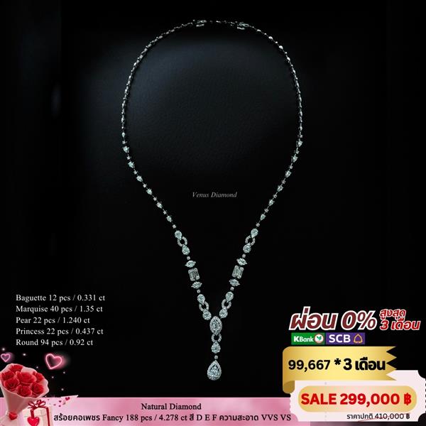 สร้อยคอเพชรน้ำหนัก 4.278 ct สี D E F ความสะอาด VVS VS