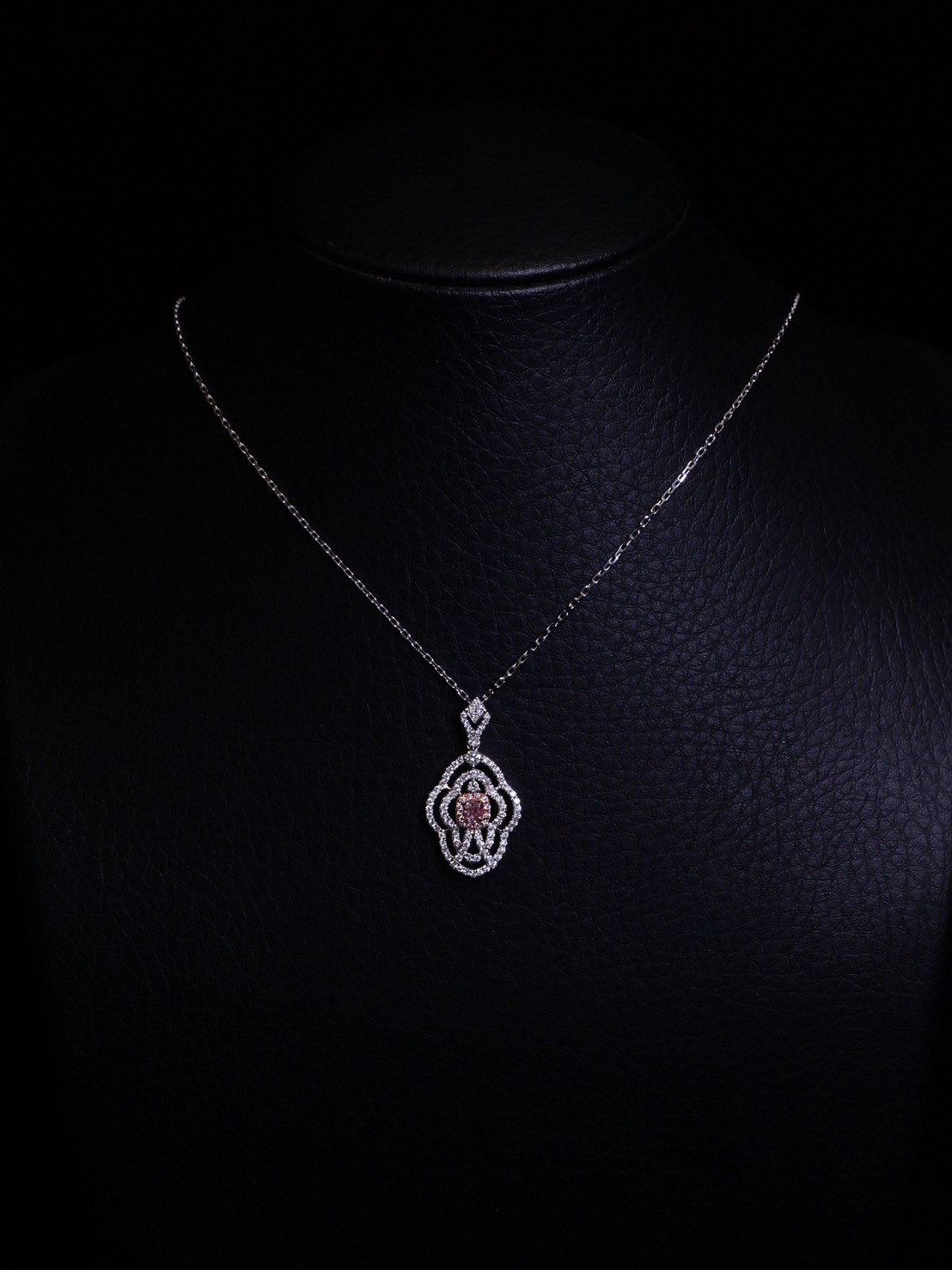 สร้อยคอเพชร Cushion 0.19 ct Fancy Light Brown-Pink SI1 1VG1G N GIA 6224591266 Round 0.53 ct white gold 18k. 4.54 g.