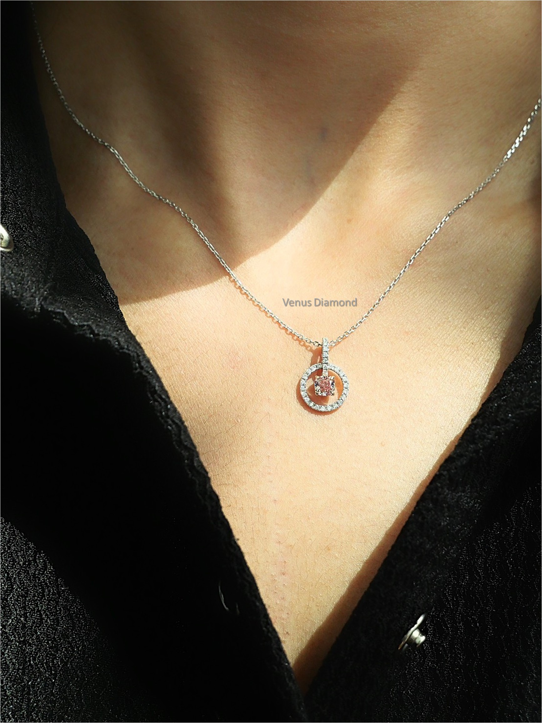 สร้อยคอเพชร Cushion 0.36 ct สี Fancy Pinkish Brown I1 2G N GIA 5221304476 Round 0.11 ct white gold 1.88 g.