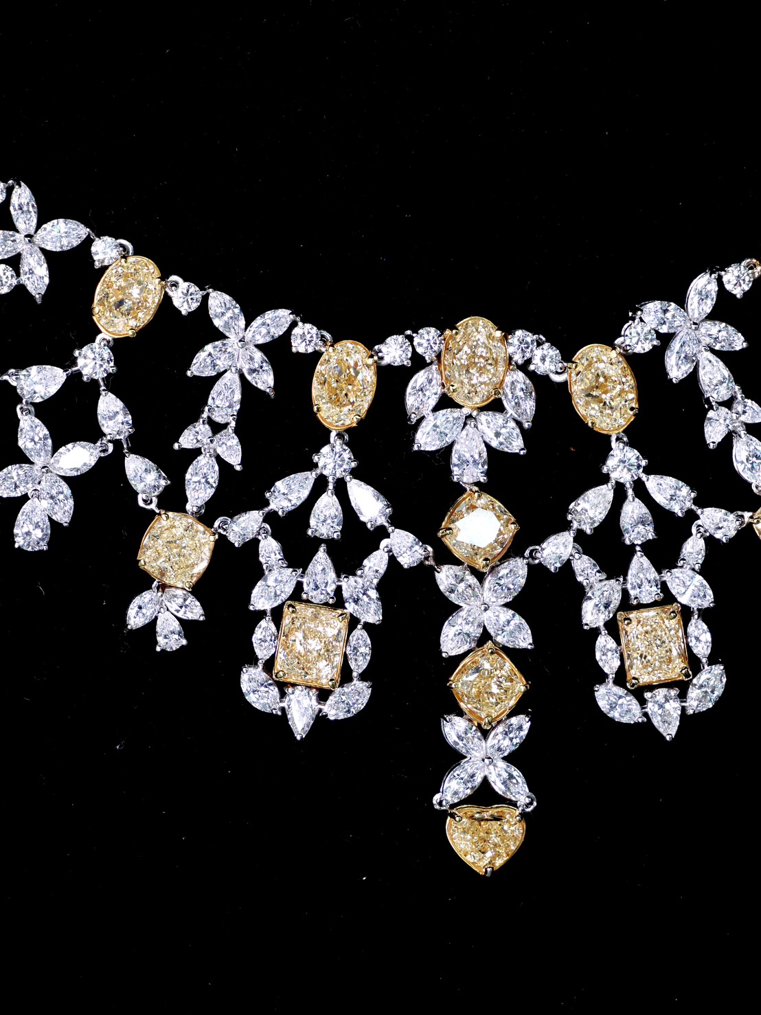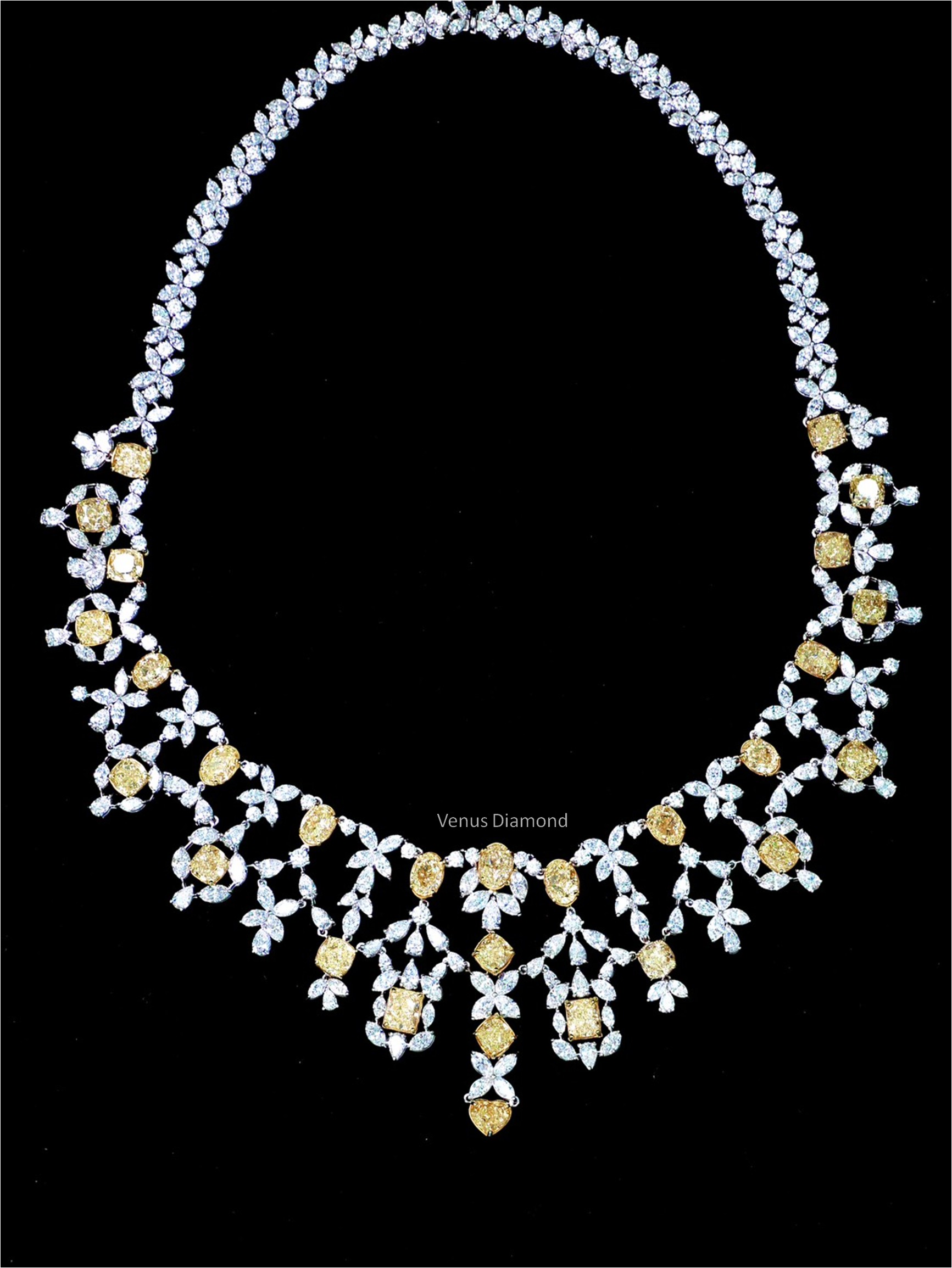 MIX FANCY YELLOW GIA 28 PCS / 29.86 CTS MARQUISE 210 PCS / 20.64 CTS PEAR 75 PCS / 8.85 CTS ROUND SMALL 62 PCS / 3.94 CTS WHITE GOLD 18K 56.90 GRAMS