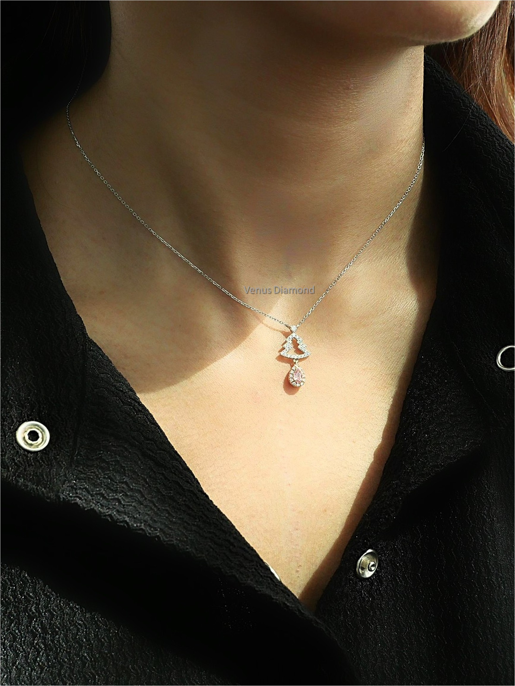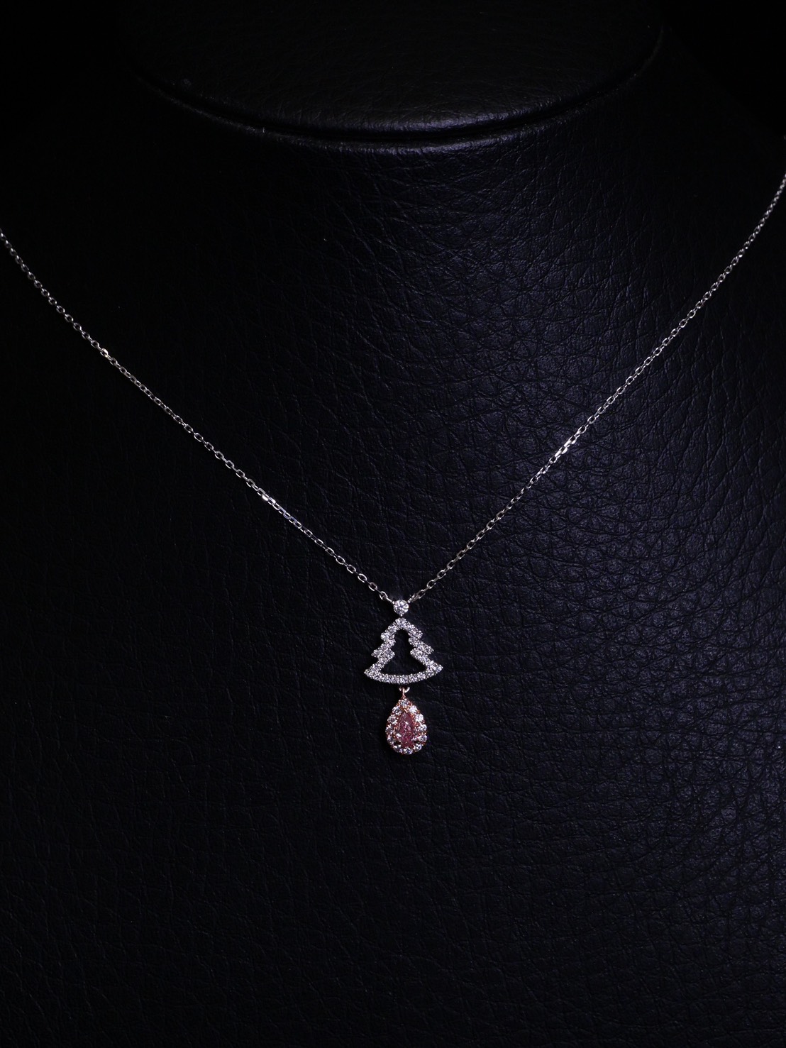สร้อยคอเพชร Pear 0.15 ct Fancy Light Brown-Pink SI1 1X1G N ใบเซอร์ GIA 1226476388 Round 0.18 ct white gold 18k. 2.09 g.