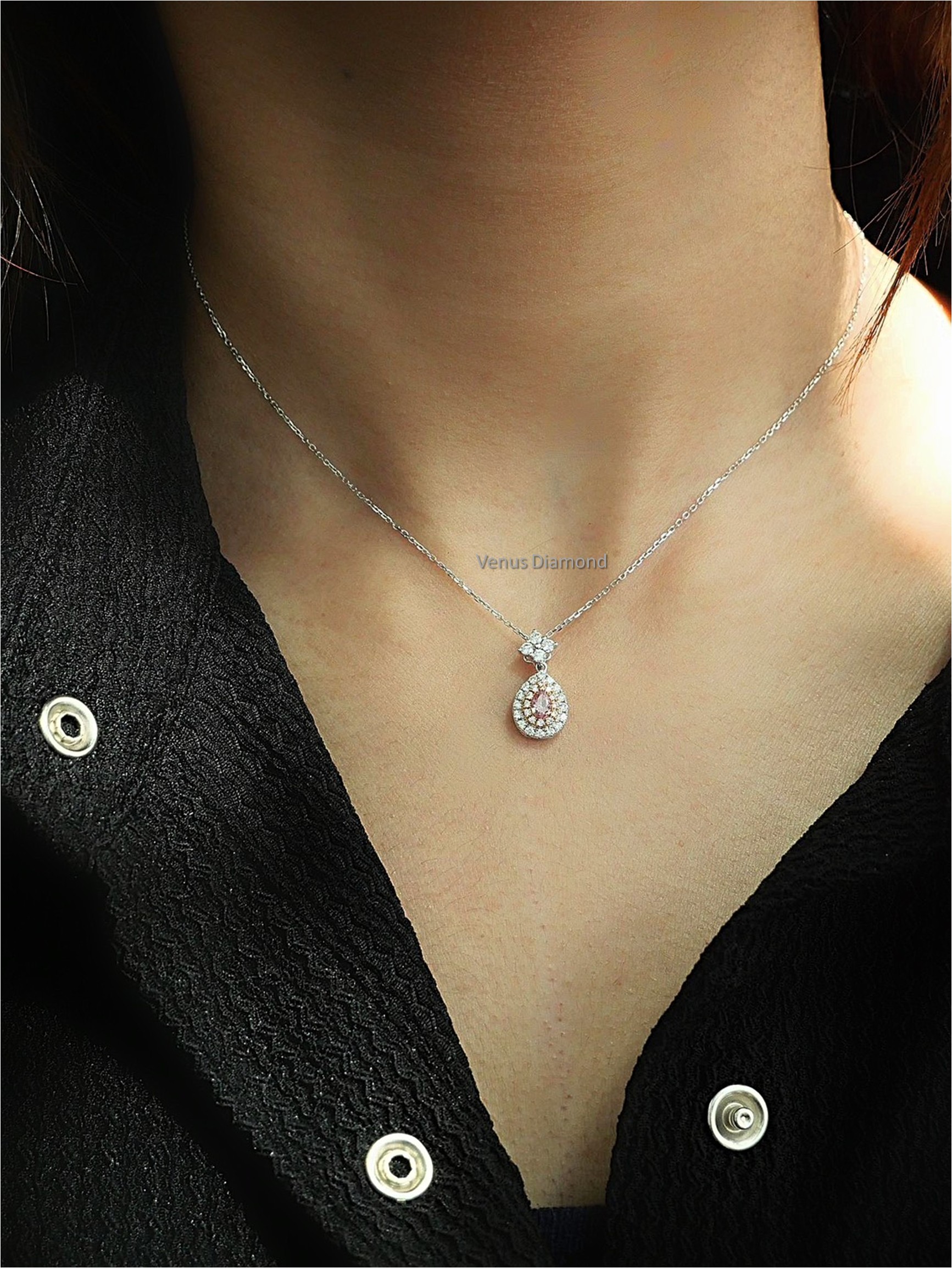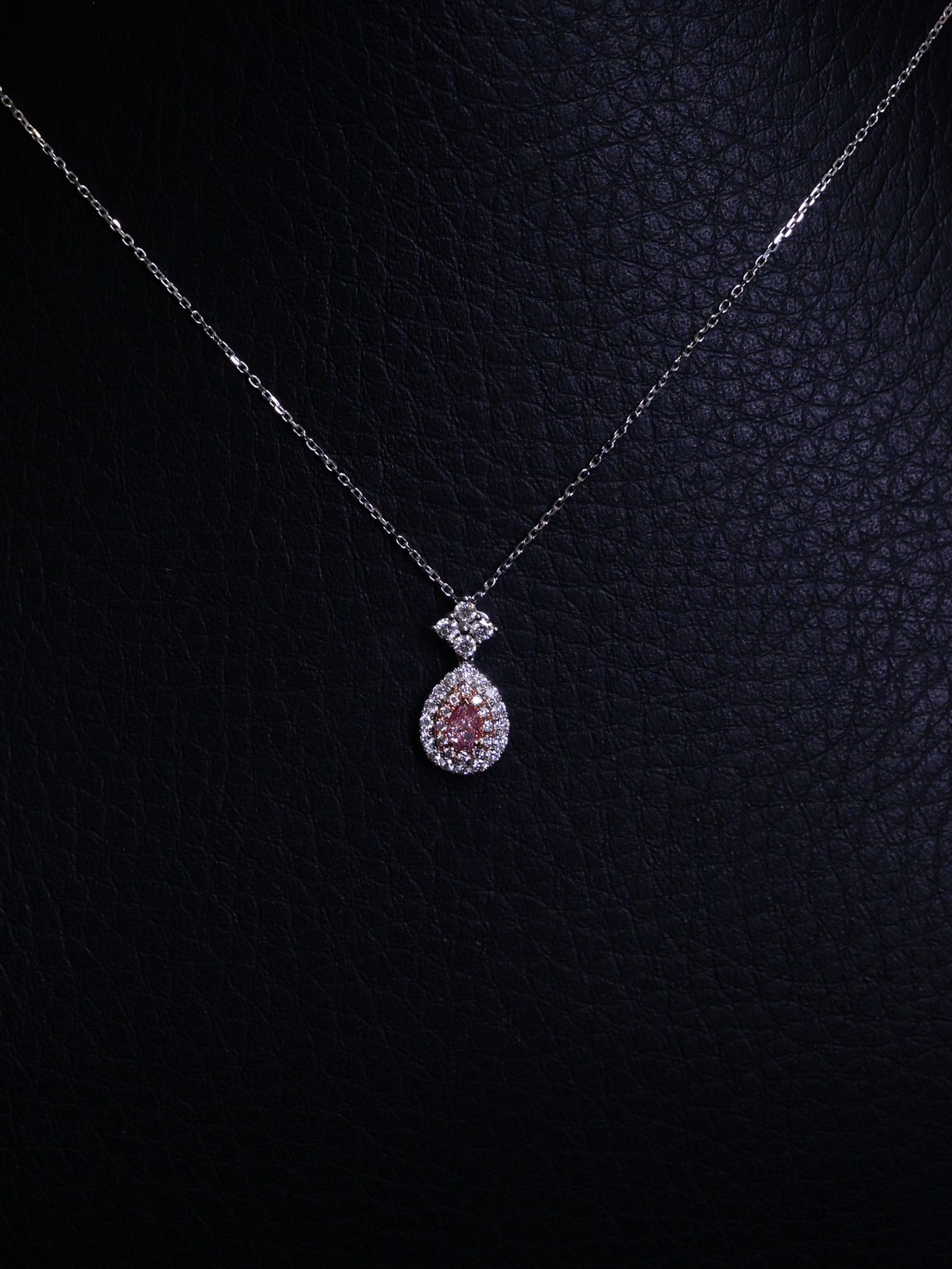 สร้อยคอเพชร Pear 0.18 ct Fancy Light Brown-Pink SI2 2G N GIA 5221476328 Round 0.33 ct white gold 2.30 g.