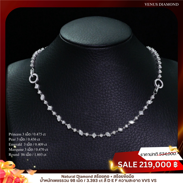 สร้อยคอ+ข้อมือเพชร 128 pcs 3.393 ct สี D E F VVS VS GIL