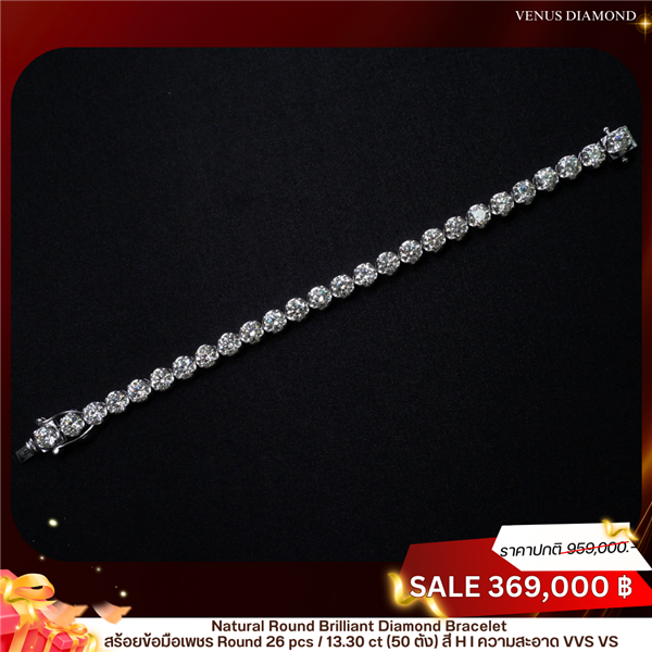 สร้อยข้อมือเพชร Diamond 26 pcs 13.30 ct 50 ตัง สี H I ความสะอาด VVS VS