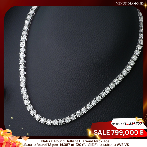 สร้อยคอเพชร Round 73 pcs / 14.387 ct น้ำ 99 98 E F Color ยาว 17.5 นิ้ว