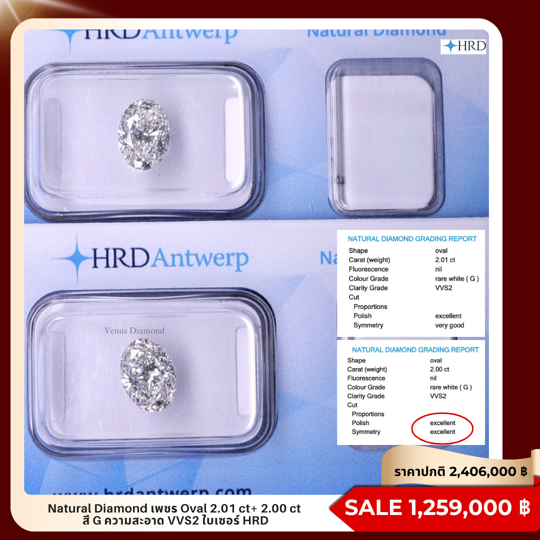 Oval 2.01 ct สี G ความสะอาด VVS2 1X1VG N HRD 250000028683 Oval 2.00 ct สี G ความสะอาด VVS2 2X N HRD 250000027564