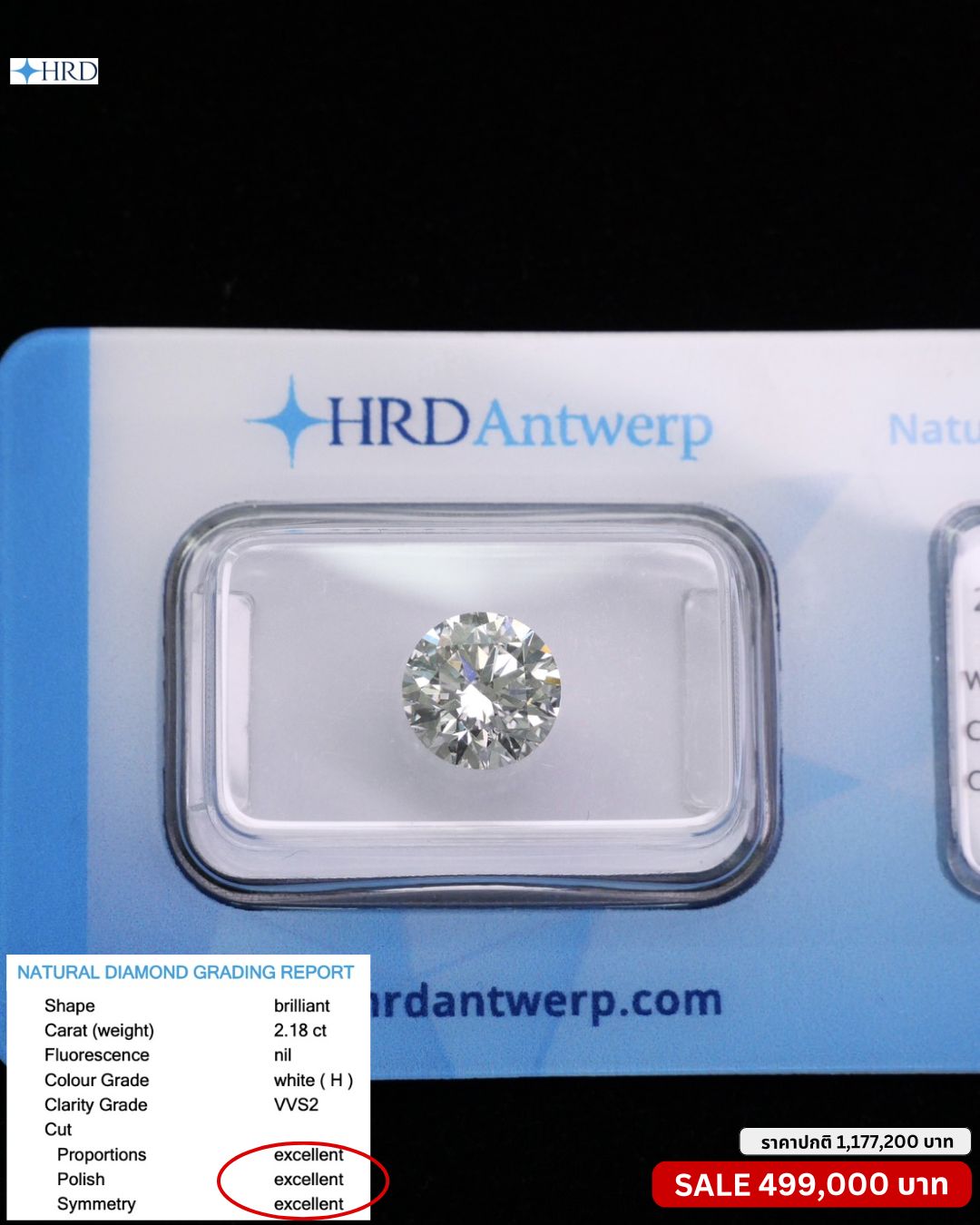 Round 2.18 ct สี H ความสะอาด VVS2 3X N HRD 250000272485