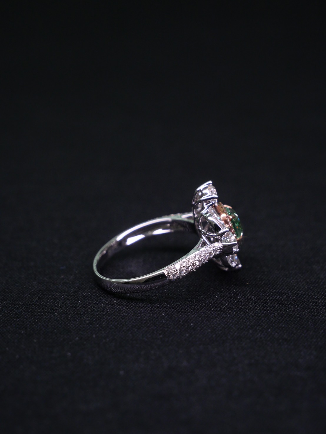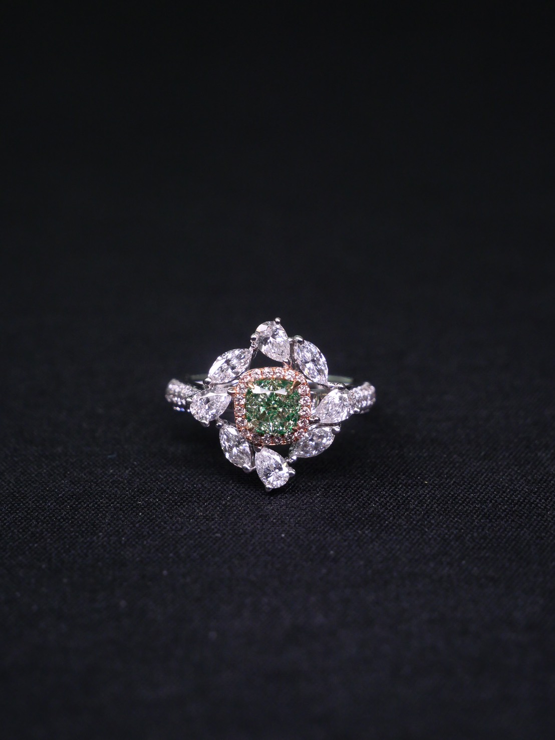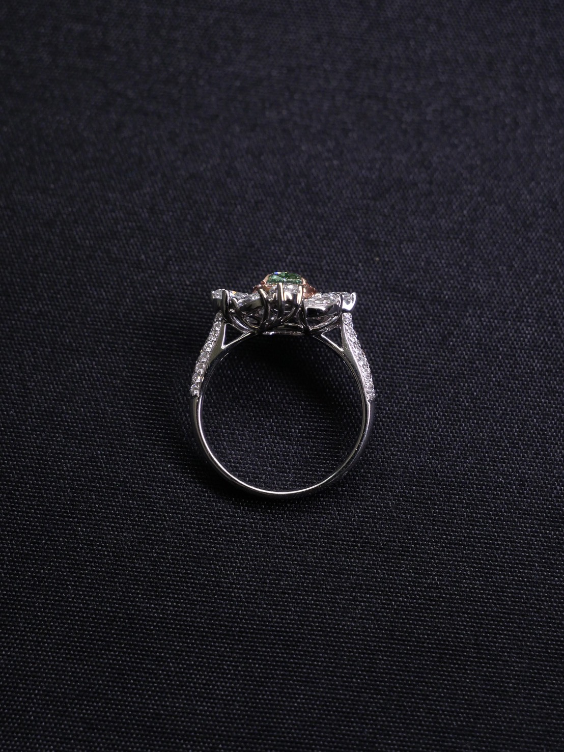 แหวนเพชร Cushion 0.70 ct Fancy Light Brownish Greenish Yellow ความสะอาด VS1 1VG1G N GIA 5212503992 Diamond 1.23 ct white gold 18k. 4.02 g.