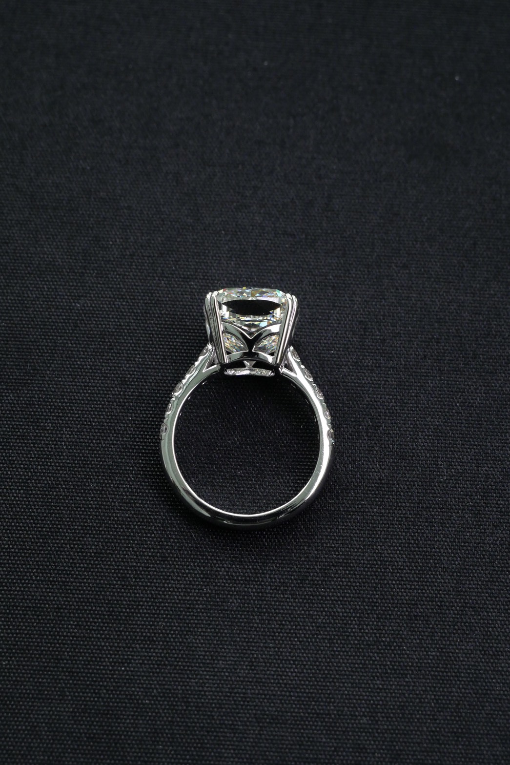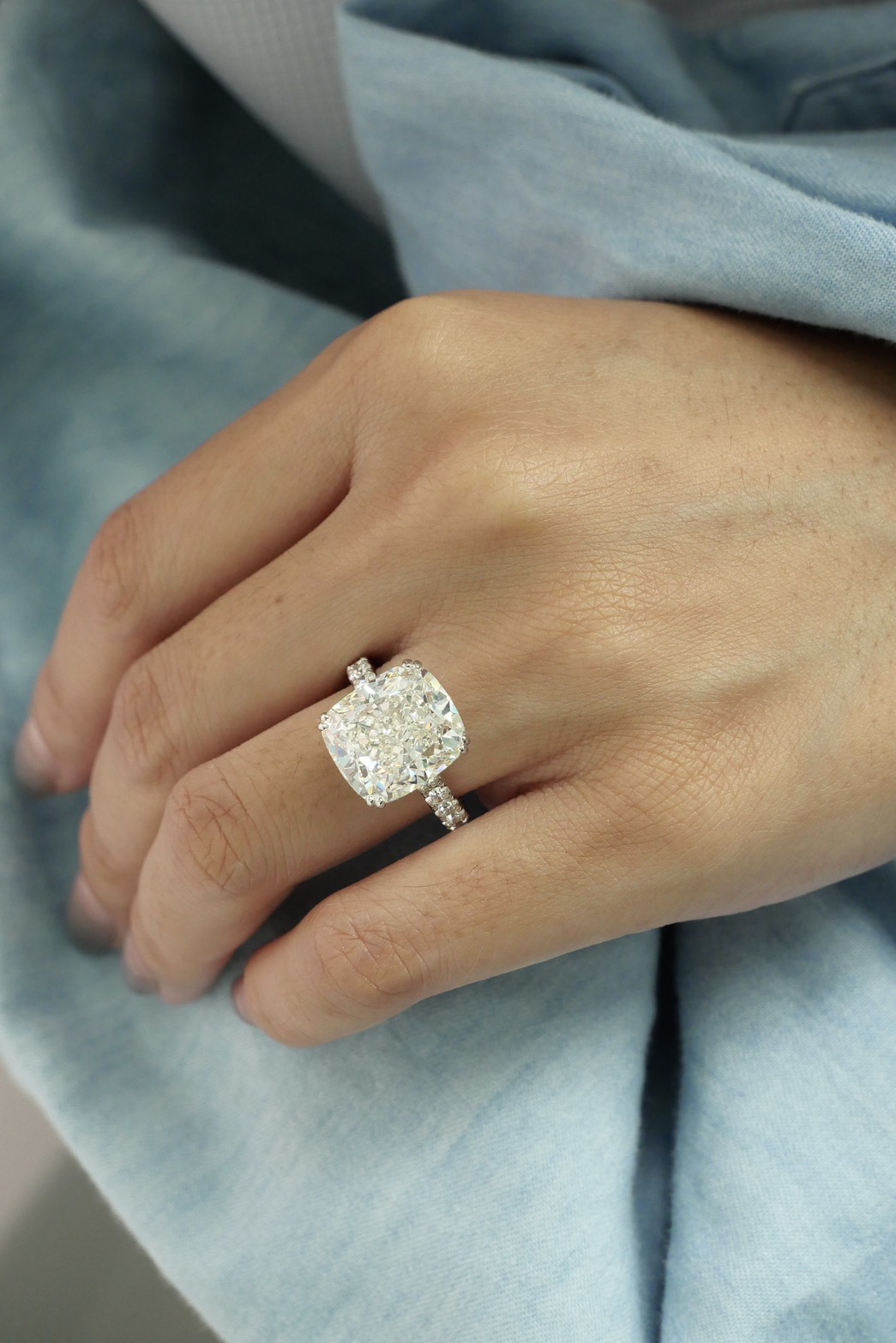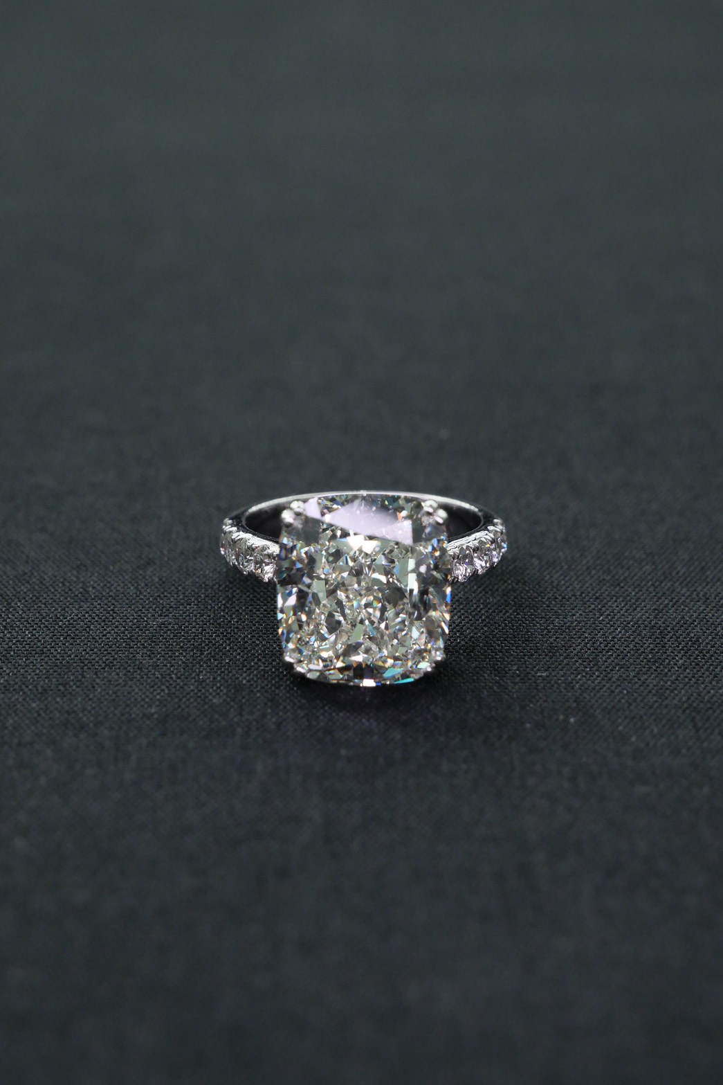 แหวนเพชร Cushion 10.02 ct เพชรขาวน้ำ 96 สี H เพชรสะอาด IF