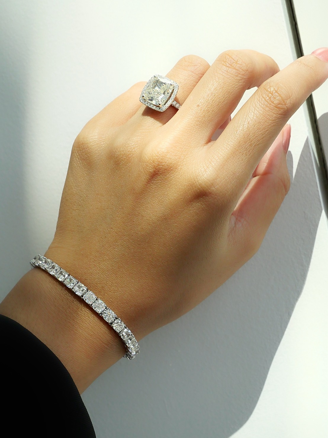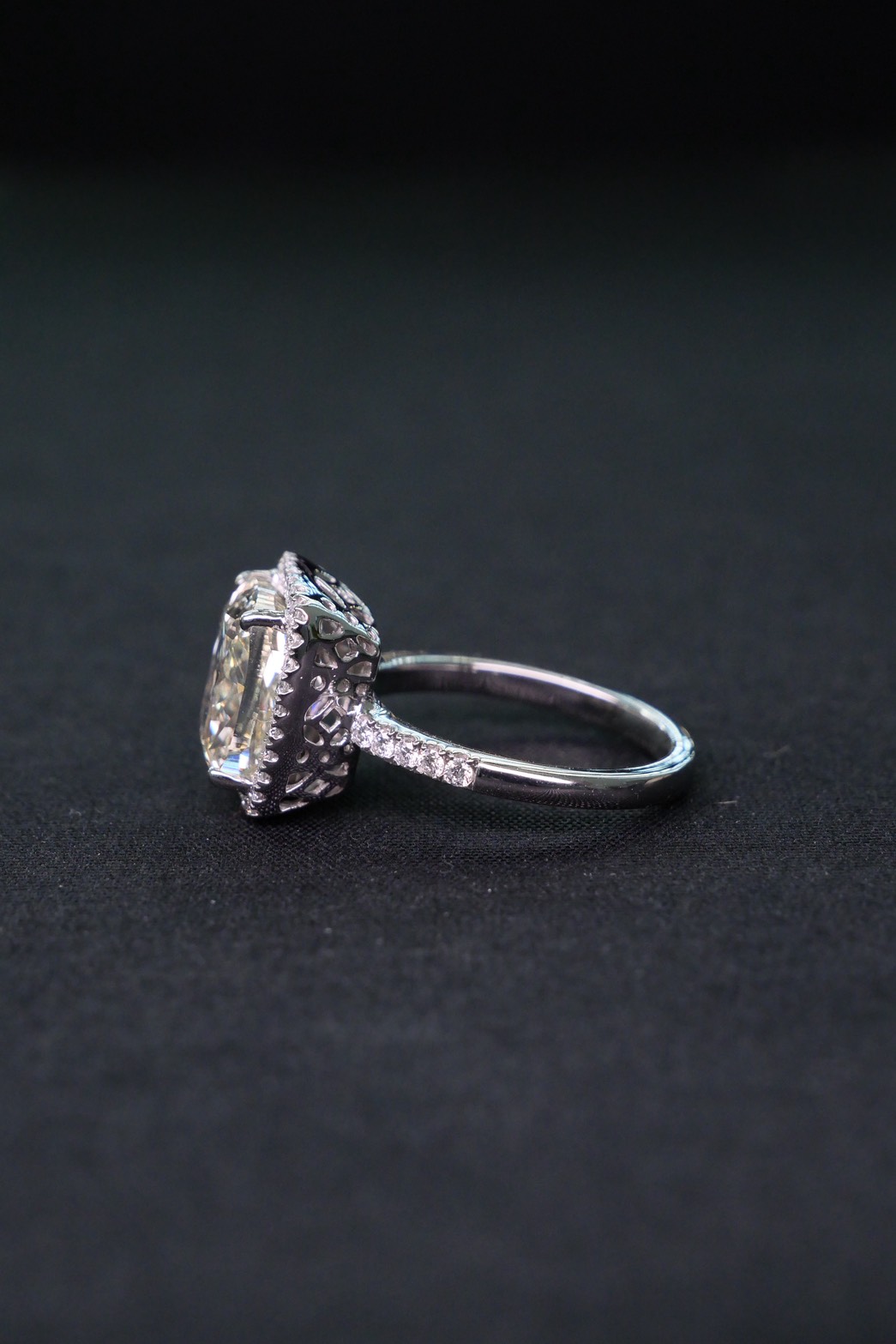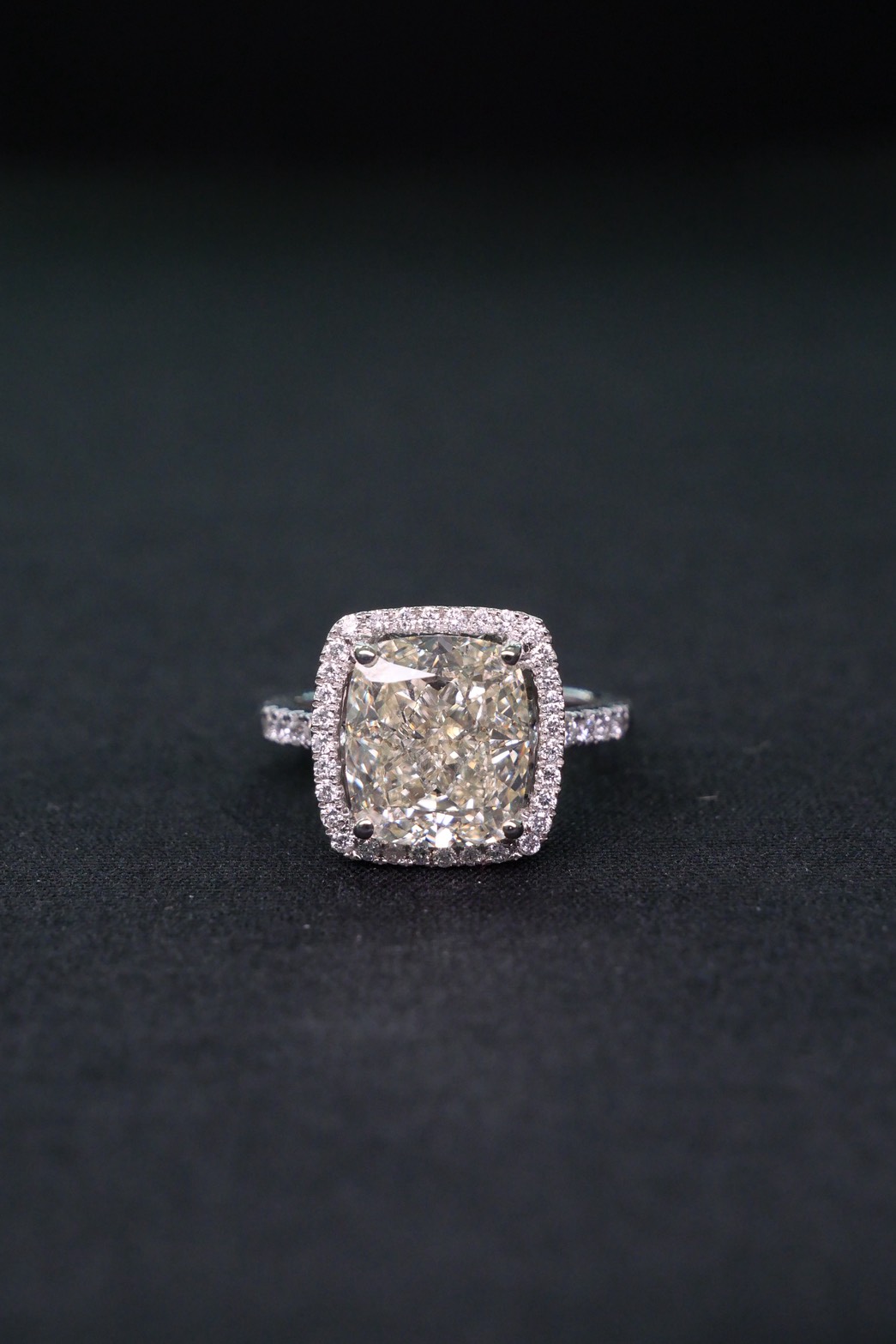 แหวนเพชร Cushion 6.06 ct เพชรน้ำ 92 สี L เพชรสะอาด VS1