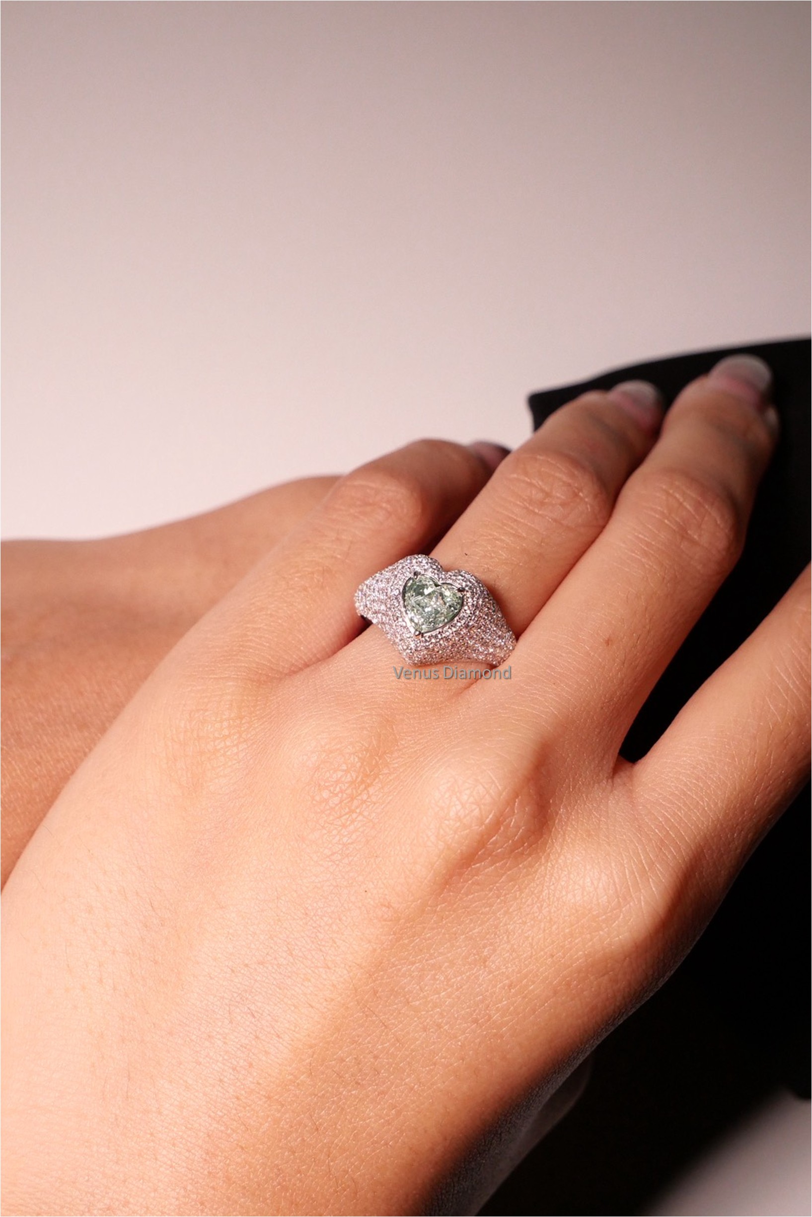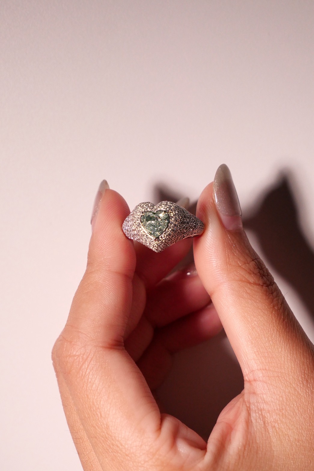 แหวนเพชร Heart 0.79 ct สี Fancy Light Green ใบเซอร์ GIA