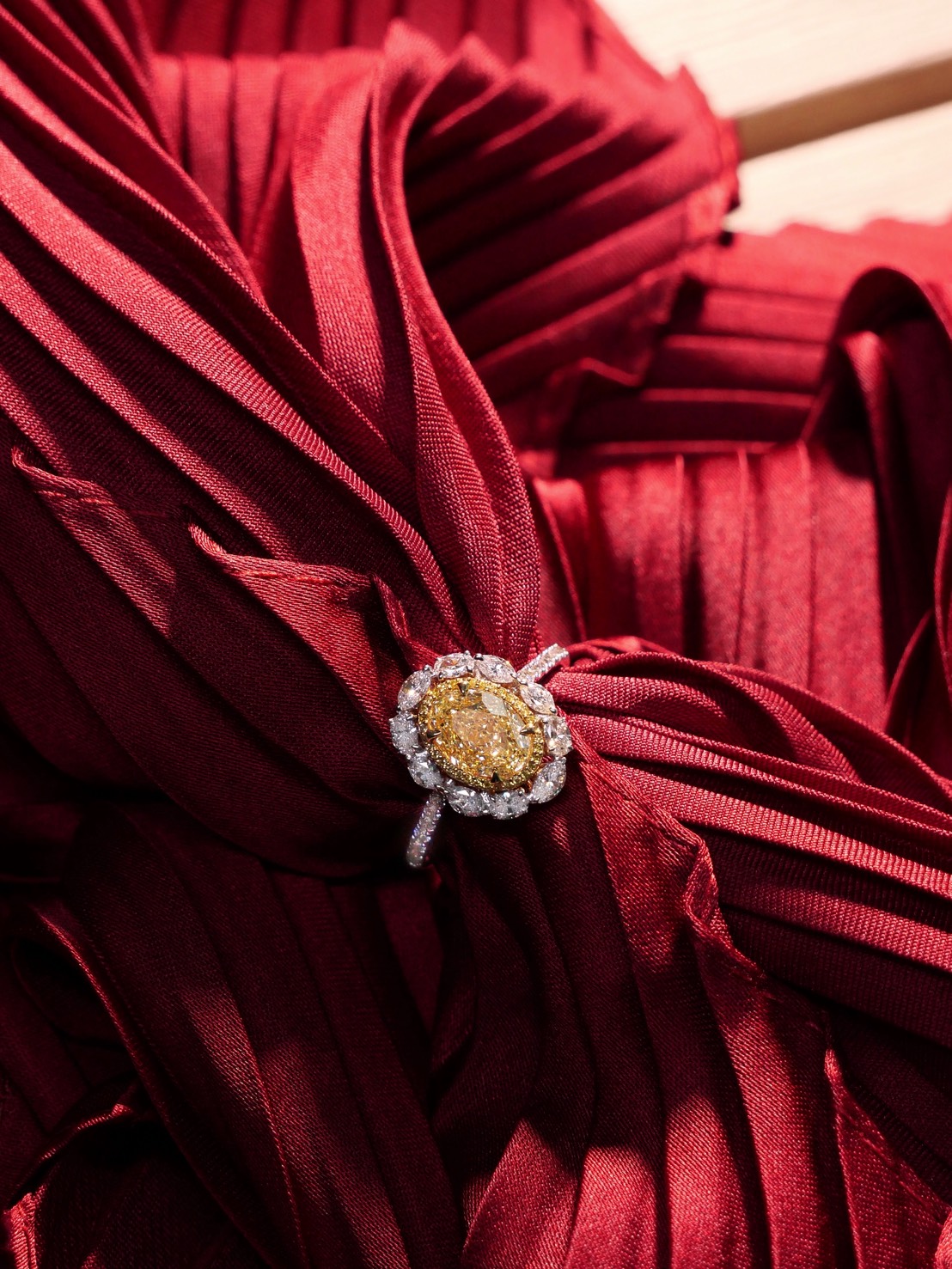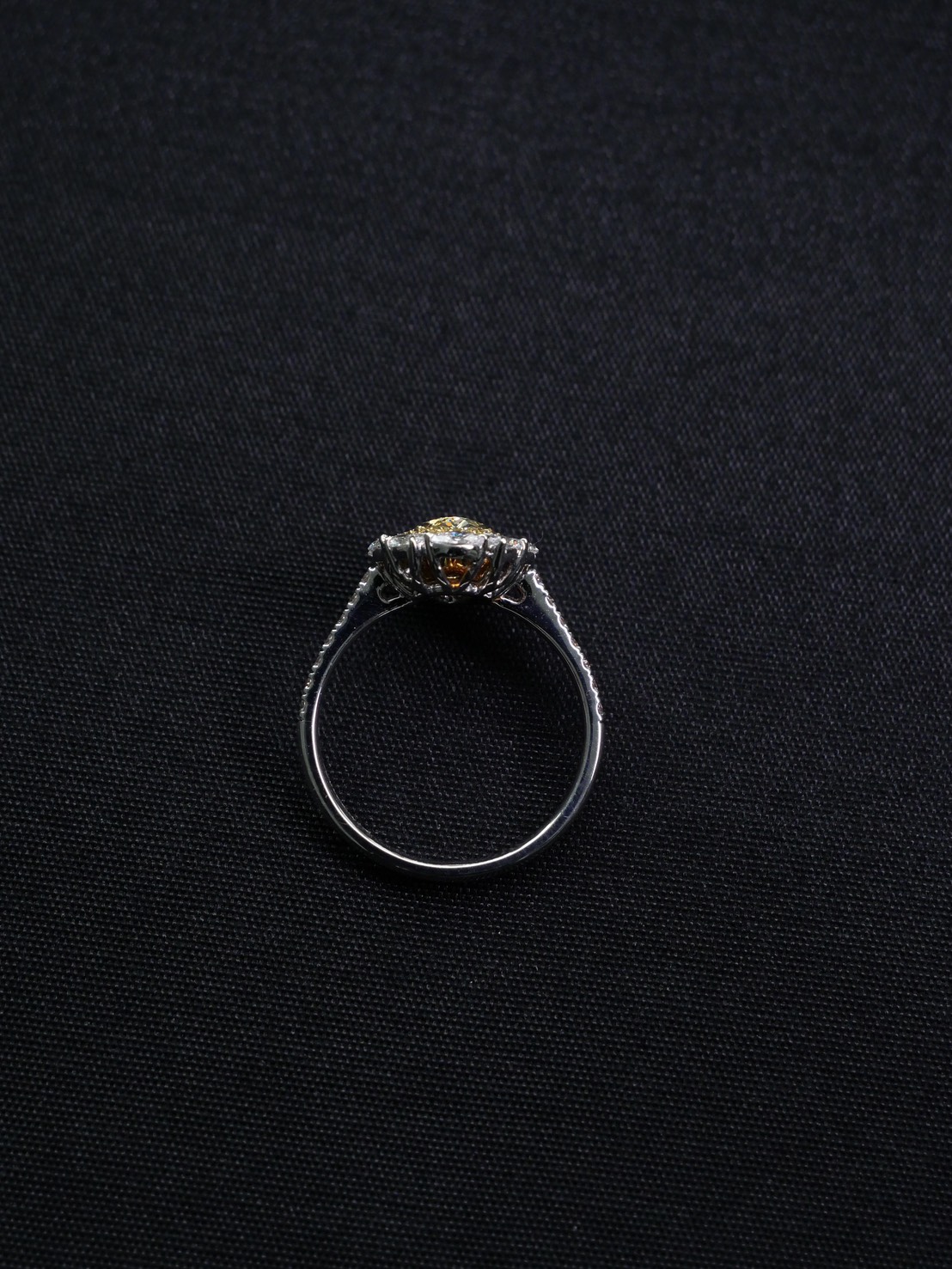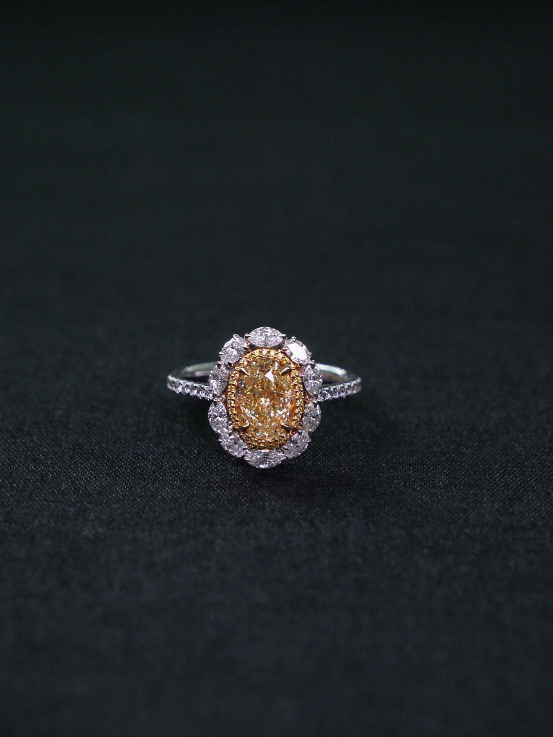 แหวนเพชร Oval 1.35 ct ความสะอาด Fancy Yellow ความสะอาด VVS VS Round 30 pcs 0.03 ct ความสะอาด Fancy Yellow RD 14 pcs 0.14 ct สี E Oval 4 pcs 0.18 ct สี E Marquise 6 pcs 0.31 ct สี E GIL