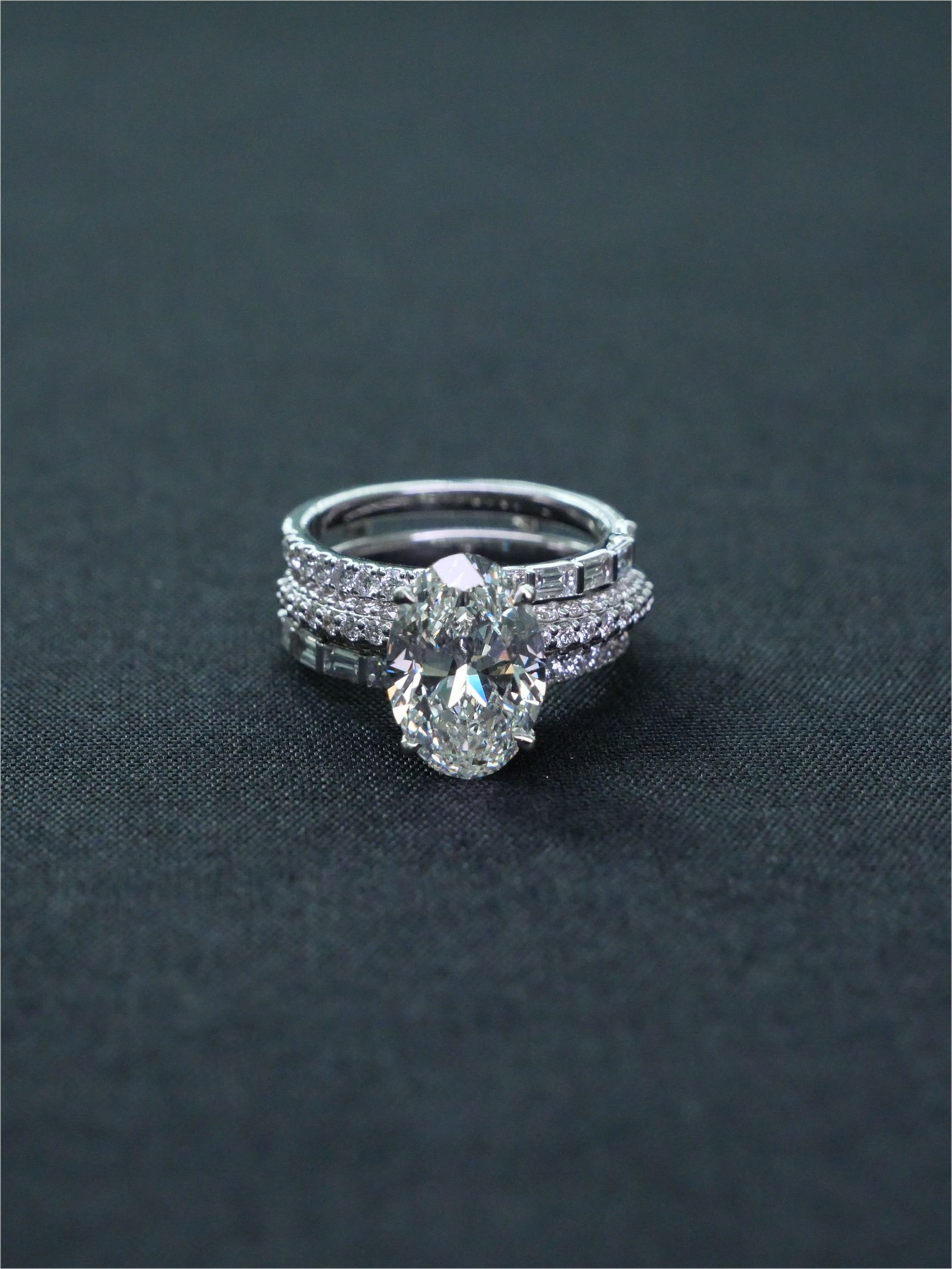 แหวนเพชร Oval 3.01 ct สี I ความสะอาด VVS2 2X N HRD 240000169586 Jacket Round 74 pcs 0.85 ct Baguette 10 pcs 0.47 ct white gold 18k. 7.70 g.