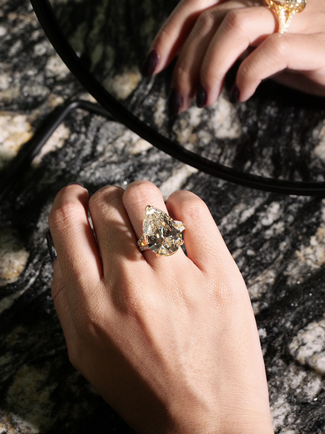 แหวนเพชร Pear 13.05 ct สี Fancy Light Yellow ความสะอาด VVS VS GIL