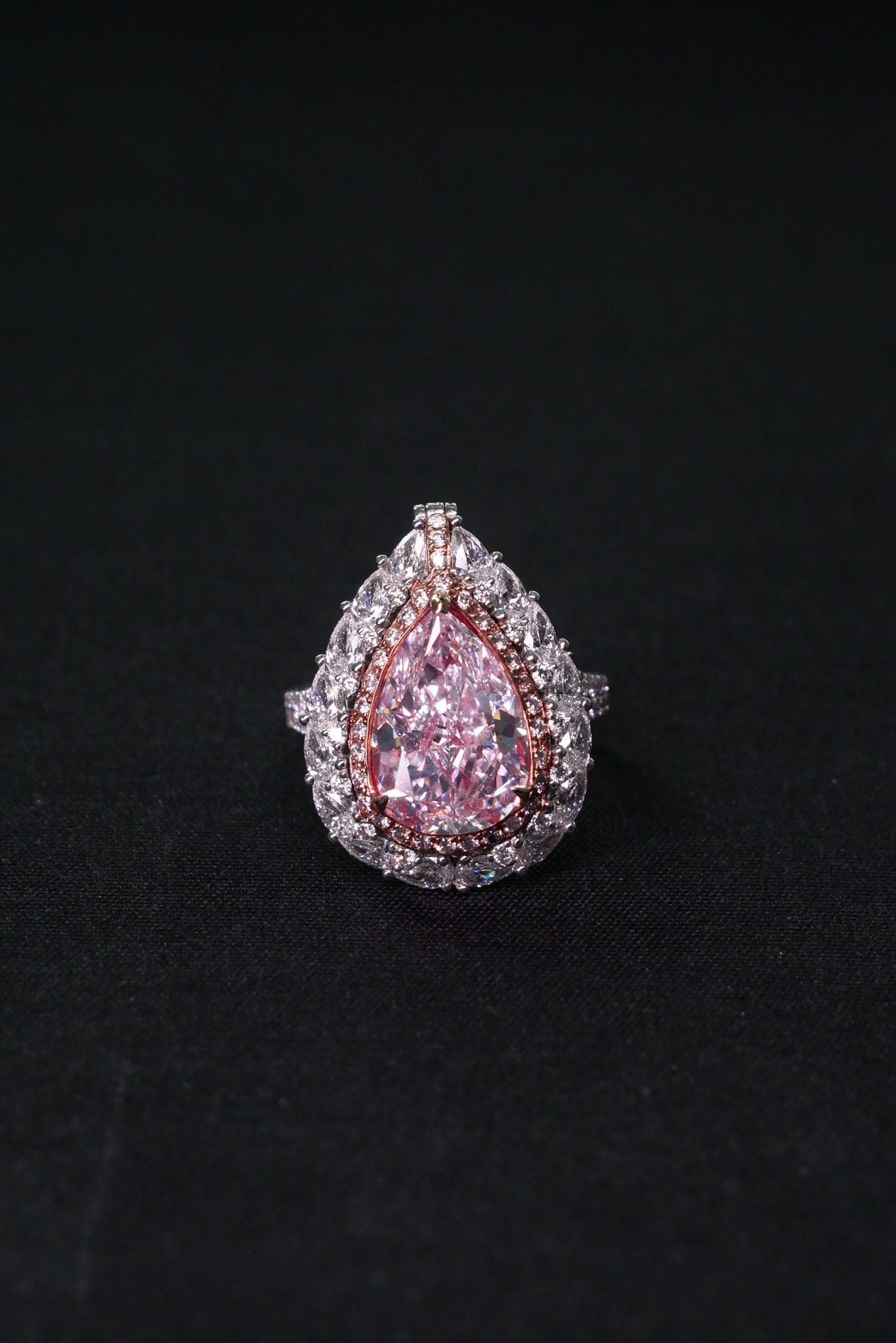 แหวนเพชร Pear 4.49 ct สี Faint Pink ความสะอาด VVS1 1VG1G F ใบเซอร์ GIA 6223394810 PEAR 16 pcs 1.64 ct Round 56 pcs 0.49 ct Round Pink 20 pcs 0.20 ct G.9.87g