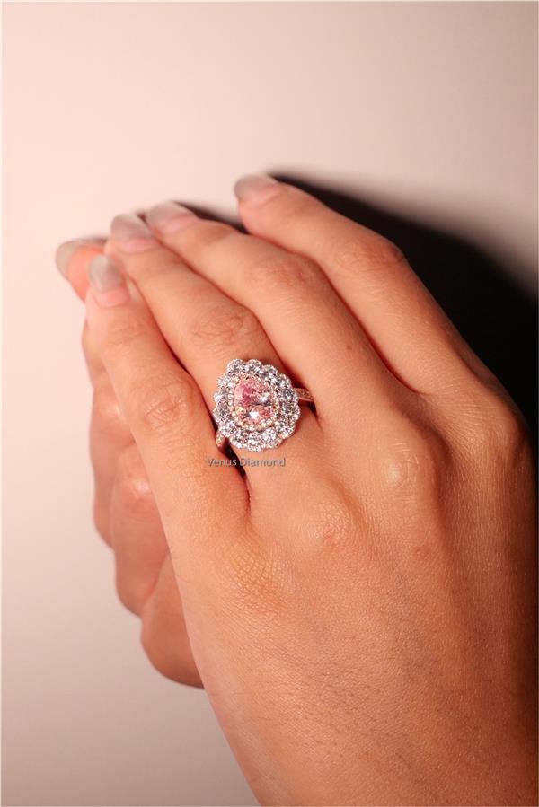 แหวนเพชร Pear 1.46 ct Fancy Orangy Pink ใบเซอร์ GIA