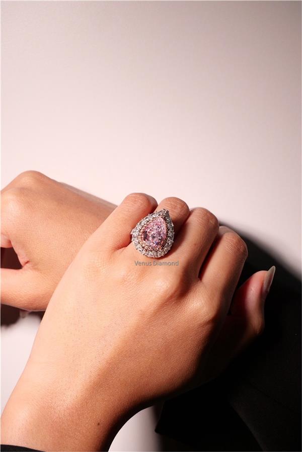 แหวนเพชร Pear 4.49 ct สี Faint Pink ความสะอาด VVS1 ใบเซอร์ GIA