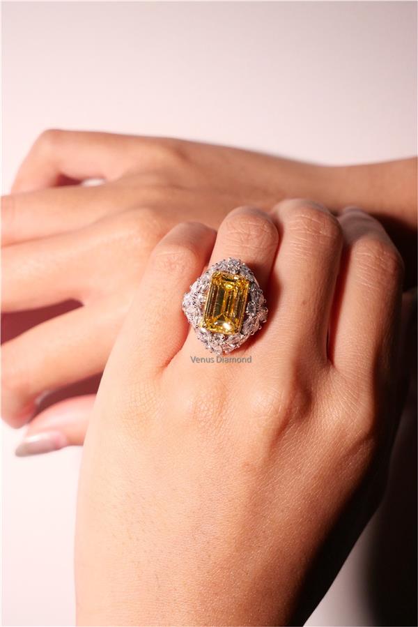 แหวนเพชร Radiant 6.71 ct Fancy vivid yellow ใบเซอร์ GIA