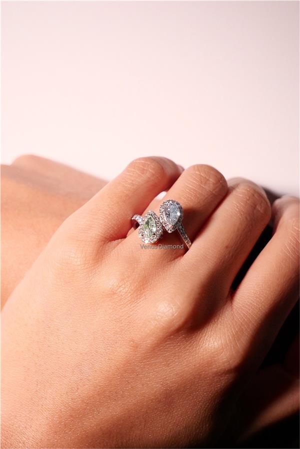 แหวนเพชร Pear 0.50 ct+0.55 ct Faint Blue / Very Light Green ใบเซอร์ GIA