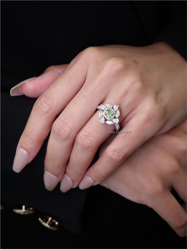 แหวนเพชร Cushion 0.70 ct Fancy Light Brownish Greenish Yellow ความสะอาด VS1 ใบเซอร์ GIA