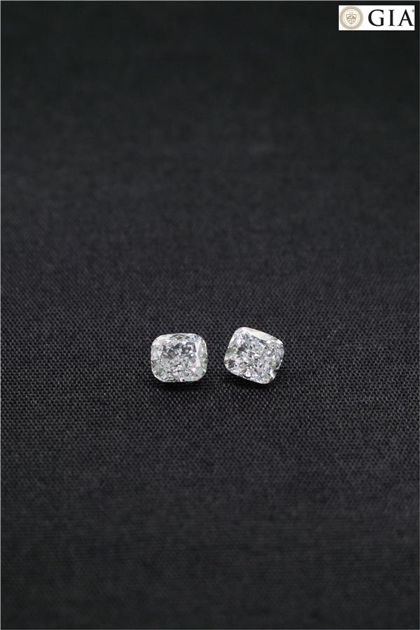 เพชร Cushion 1.01 ct+1.01 ct สี D ความสะอาด VS1-VVS2 ใบเซอร์ GIA