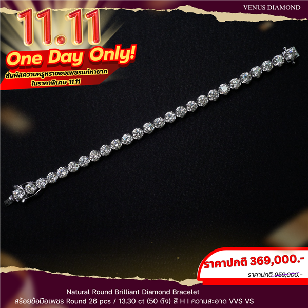 สร้อยข้อมือเพชร Diamond 26 pcs 13.30 ct 50 ตัง สี H I ความสะอาด VVS VS