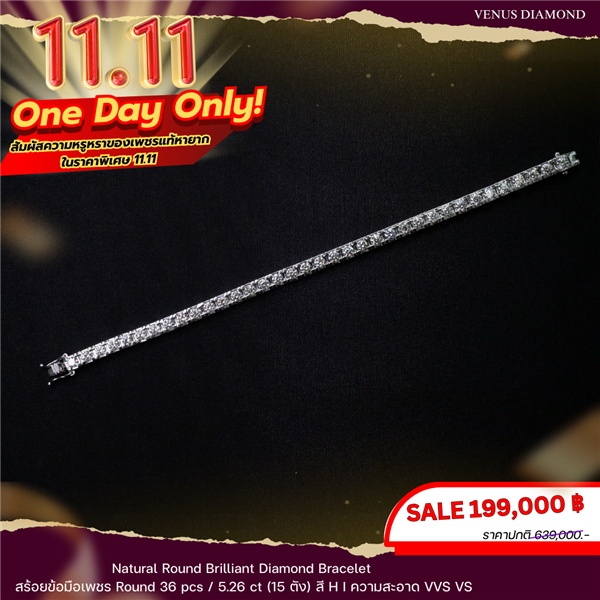 สร้อยข้อมือ Diamond 36 pcs 5.26 ct 15 ตัง H-I ความสะอาด VVS VS