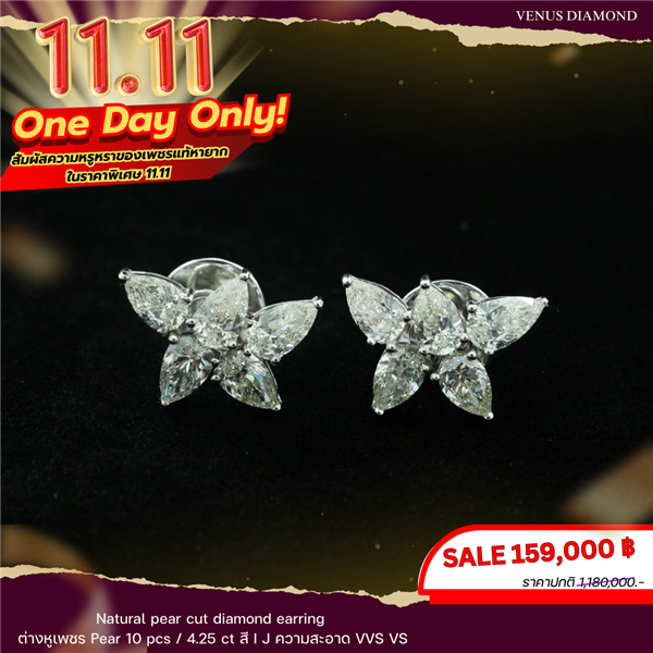 ต่างหูเพชร Pear 10 pcs 4.25 ct สี I J ความสะอาด VVS VS