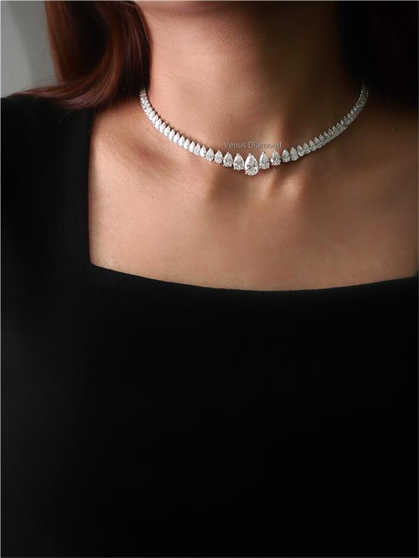 สร้อยคอเพชร Round 26.81 ct Pear 6.80 ct ต่างหูเพชร Round 12.69 ct สี F G ความสะอาด VVS ...