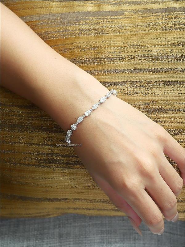 สร้อยข้อมือเพชร Pear + Marquise 19 pcs 4.52 ct Round 129 pcs 1.48 ct สี F ความสะอาด VVS1