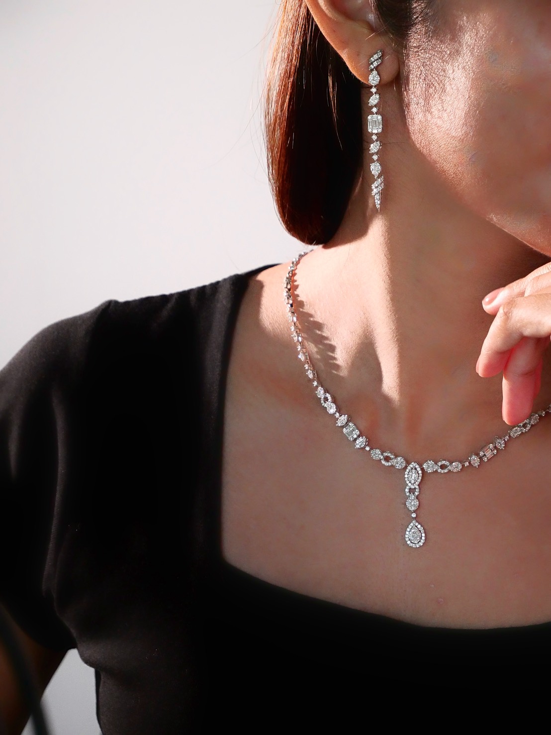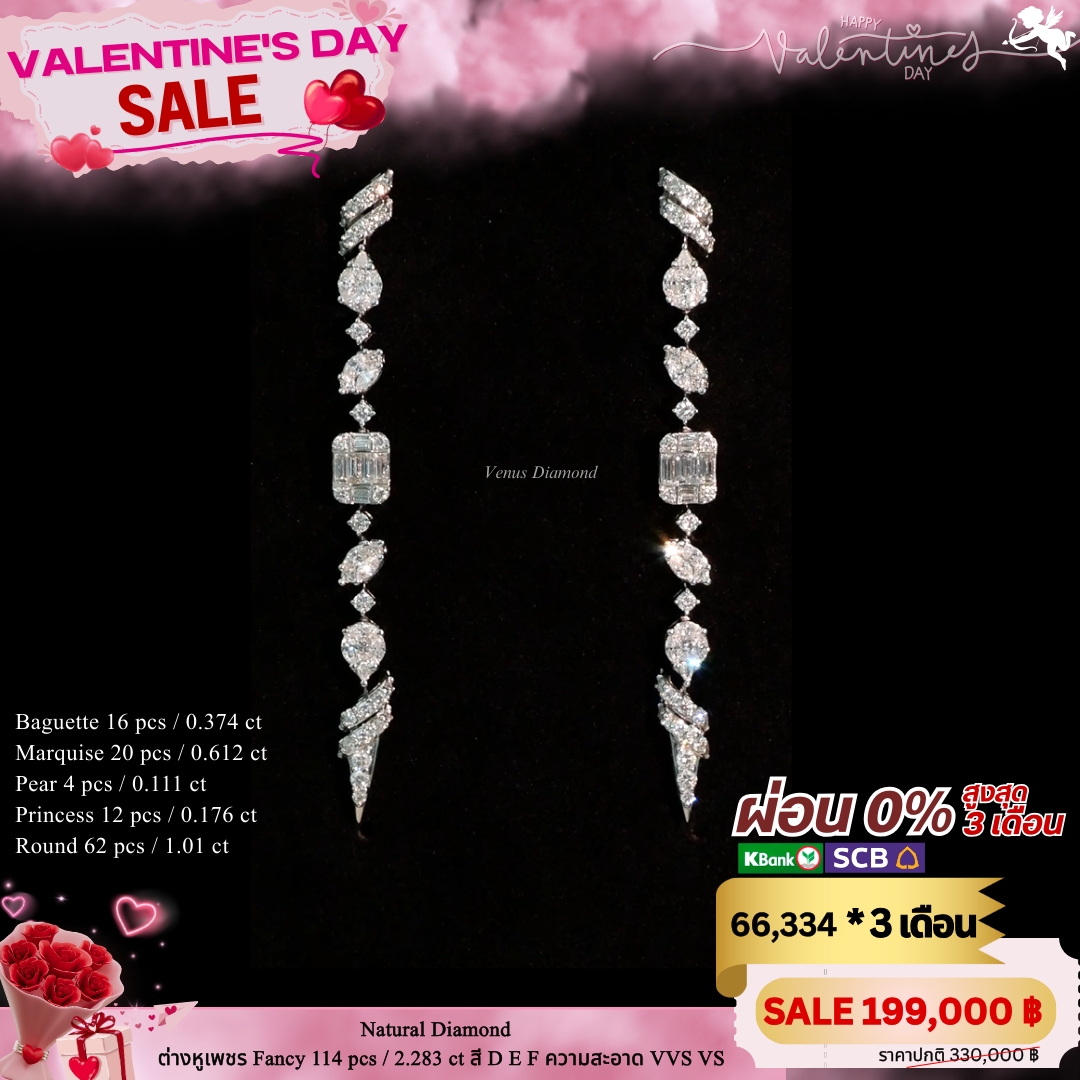 ต่างหู E2813A1 / 131765 Baguette 16/0.374 ct Marquise 20/0.612 ct Pear 4/0.111 ct Princess12/0.176 ct Round 62/1.01 ct white gold 18k. 8.33g สี D E F ความสะอาด VVS VS