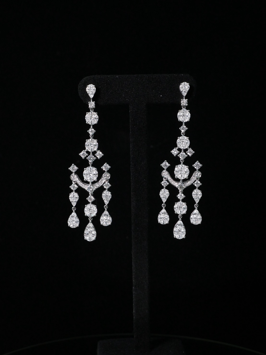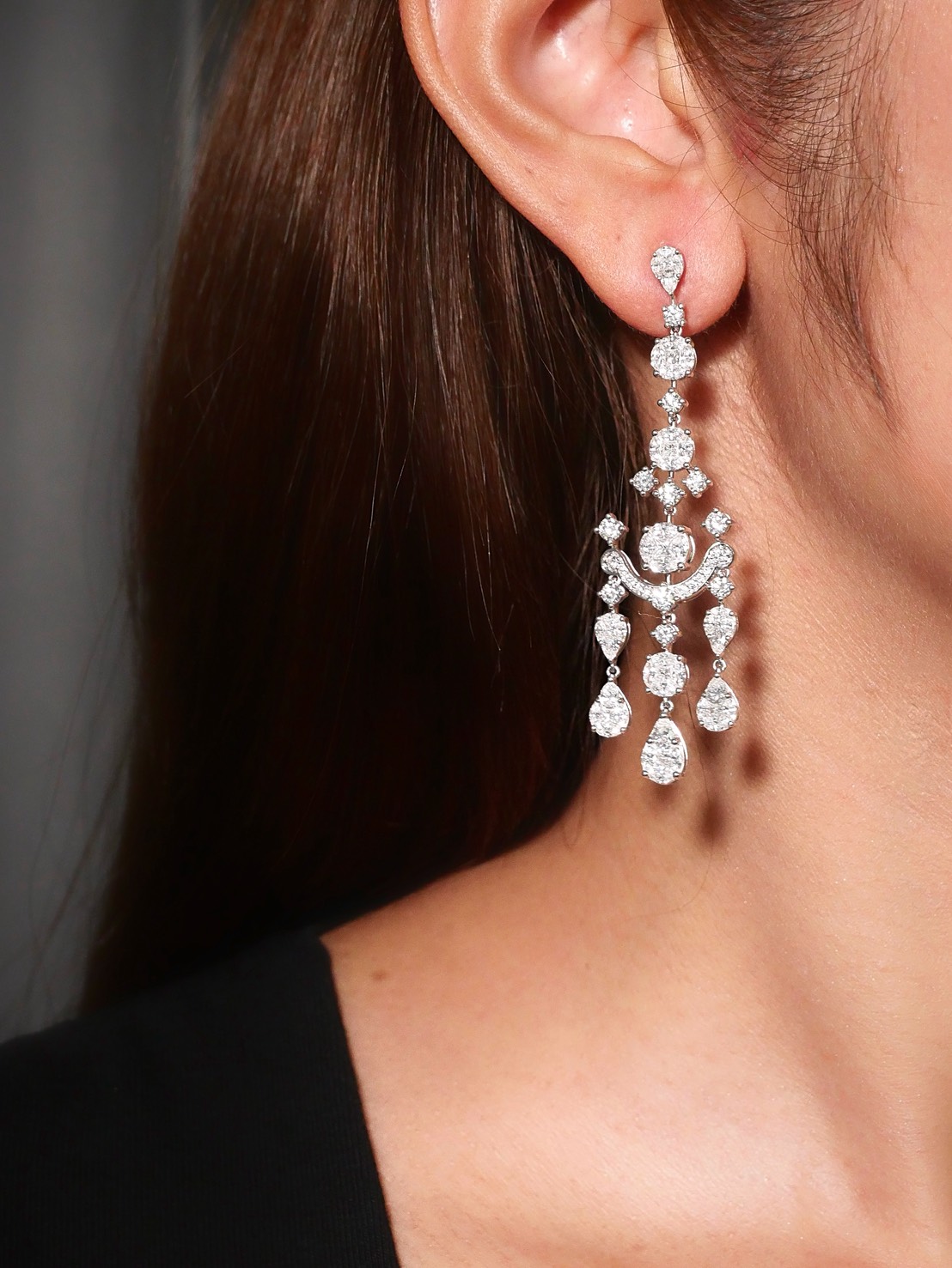 ต่างหู BE 3464WDI1 Marquise 68/2.83 ct Pear 12/1.02 ct Princess 22/0.33 ct Round 46/1.87 ct white gold 18k. 17.86 g.