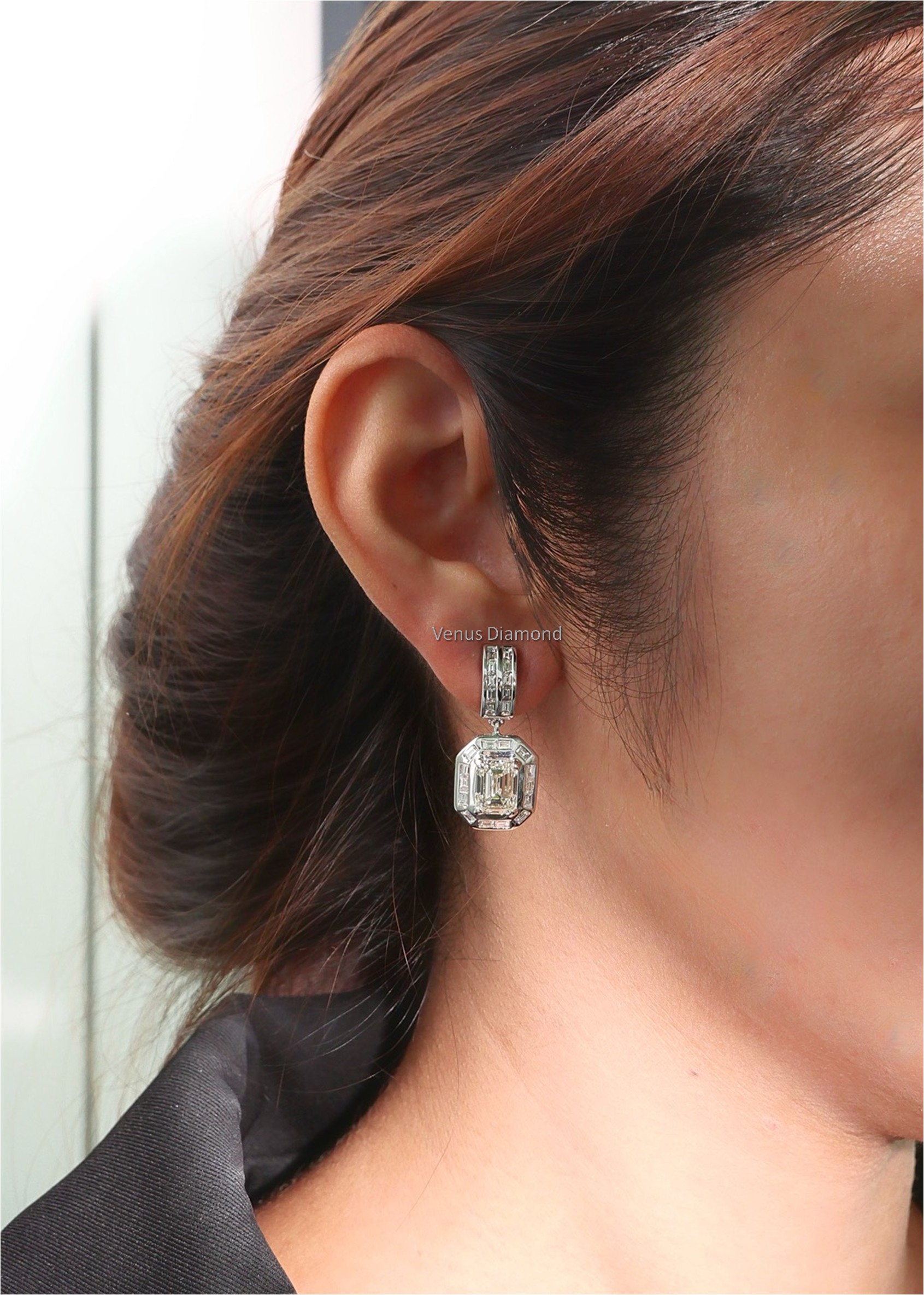 ต่างหู Emerald 3.10+3.02 ct สี H เพชรขาวน้ำ 96 เพชรสะอาด VVS2