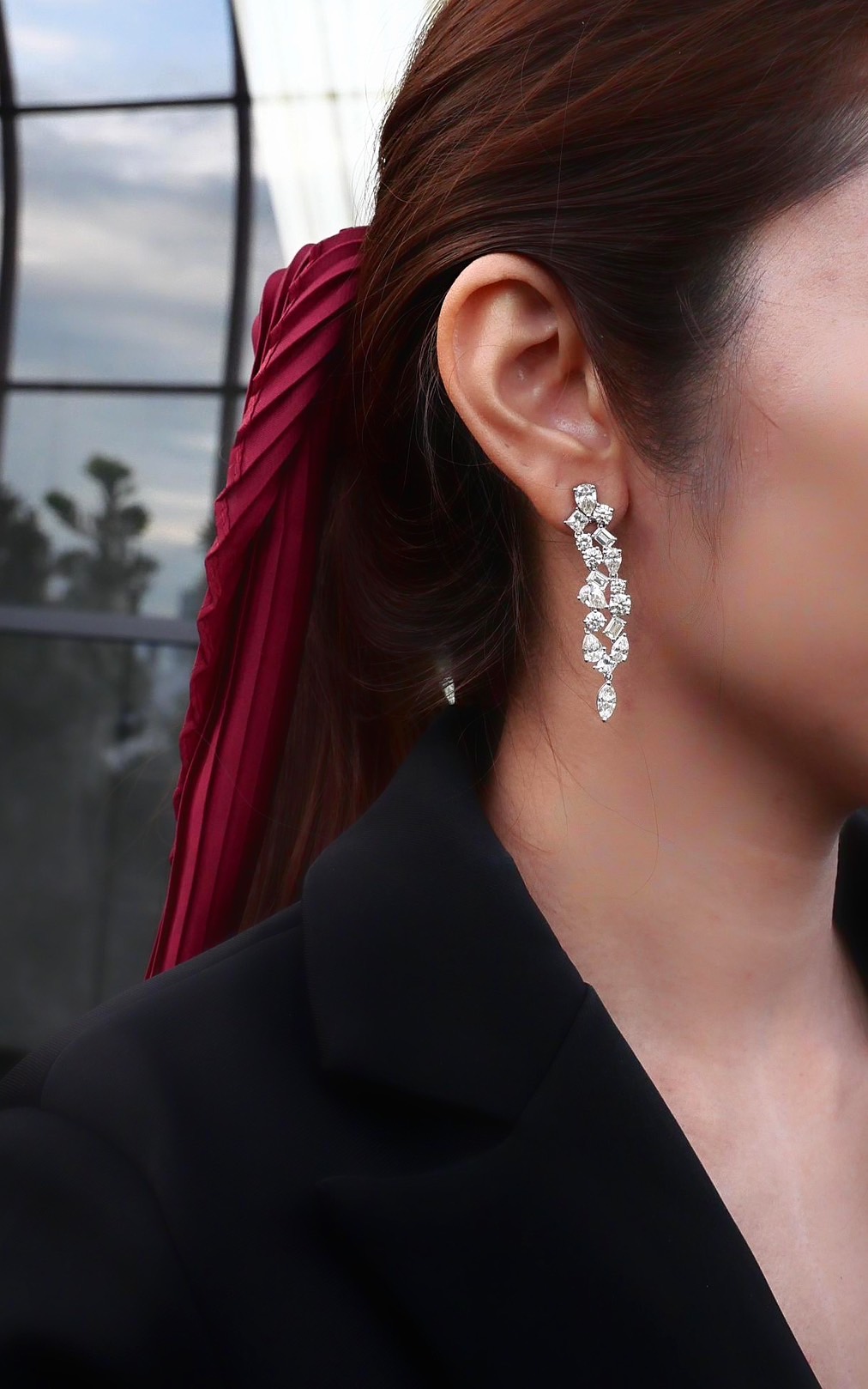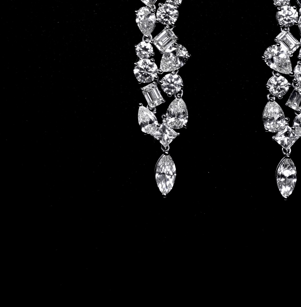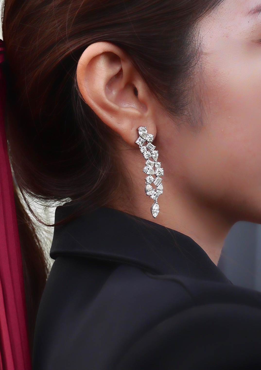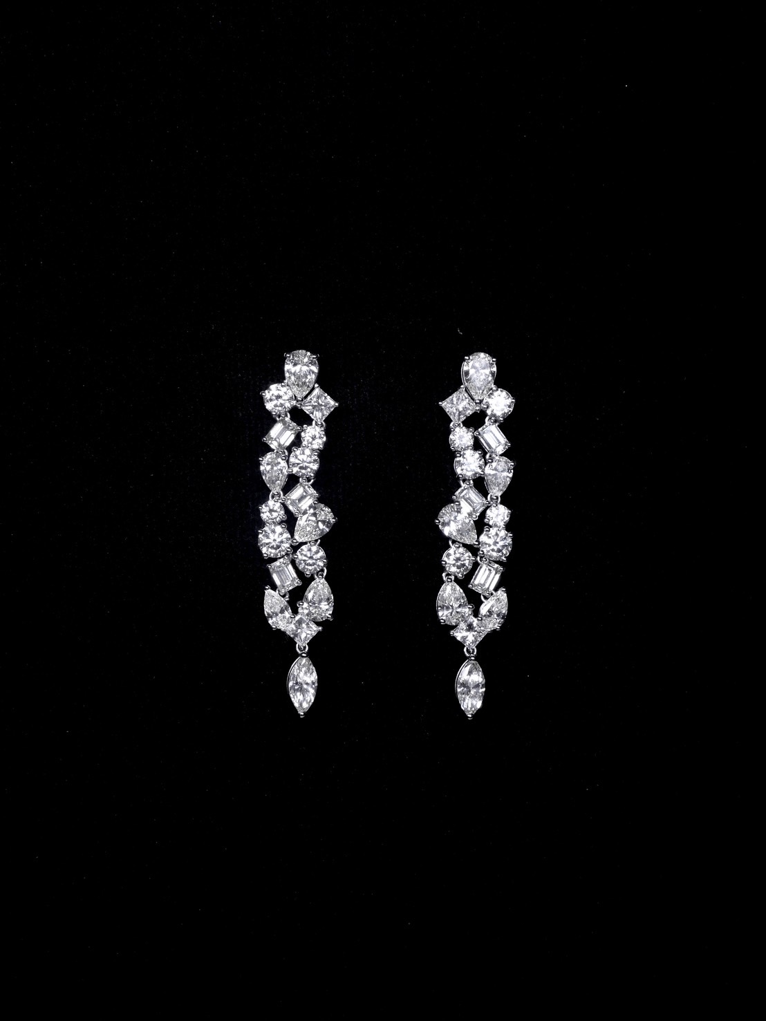 ต่างหูเพชร สี H I ความสะอาด VVS VS Pear 2/1.14 ct Pear 4/2.08 ct Marquise 2/1.07 ct Pear 4/1.27 ct Princess 4/1.33 ct Emerald 6/1.92 ct Round 2/0.85 ct Round 6/1.74 ct Round 4/0.60 ct Total 34/12.00 ct white gold 18 k. 13.75 g