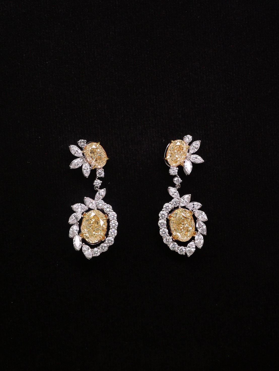 ต่างหูเพชร OVAL 2 PCS 6.57 ct Fancy Intense Yellow VVS1 OVAL 2 PCS 3.37 ct Fancy Intense Yellow VVS1 GIL Marquise 20 pcs 2.45 ct Round 22 pcs 1.40 ct Gold 16.18 g
