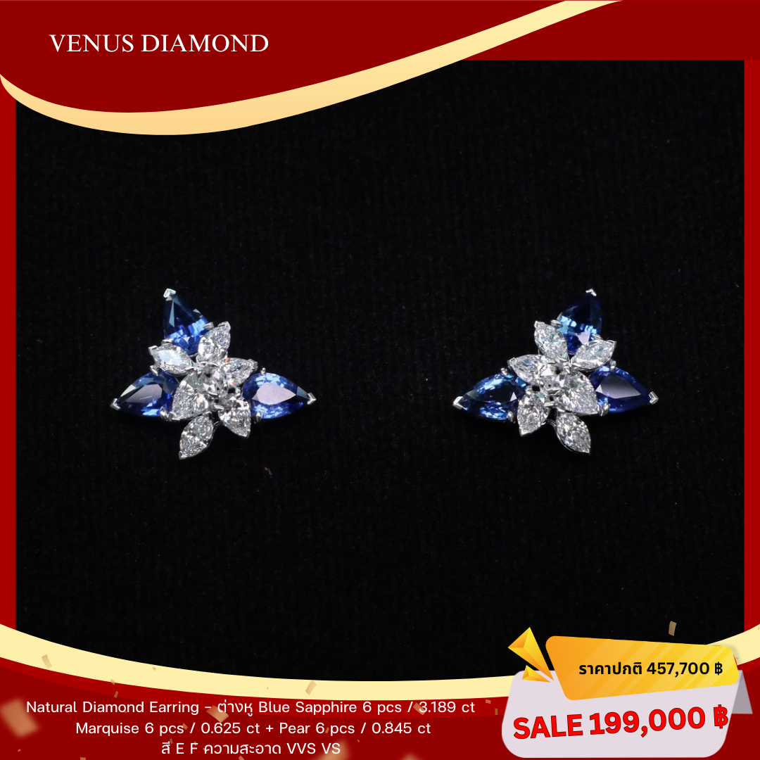 ต่างหู Sap 6/3.189 ct MQ 6/0.625 ct PS 6/0.845 ct G.4.23g E F G VVS VS