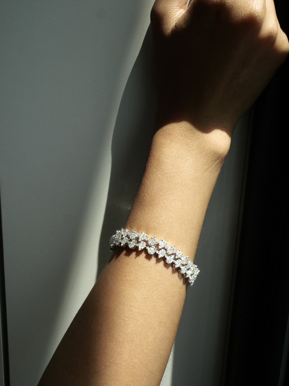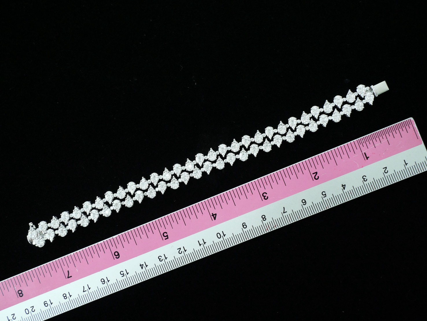 สร้อยข้อมือ B1565A1K / 102248 25858 Marquise 3/0.074 ct Marquise 177/4.886 ct Pear 60/1.795 ct Princess 60/1.169 ct Round 60/0.573 ct G.28.72 g. สี E F G ความสะอาด VVS VS