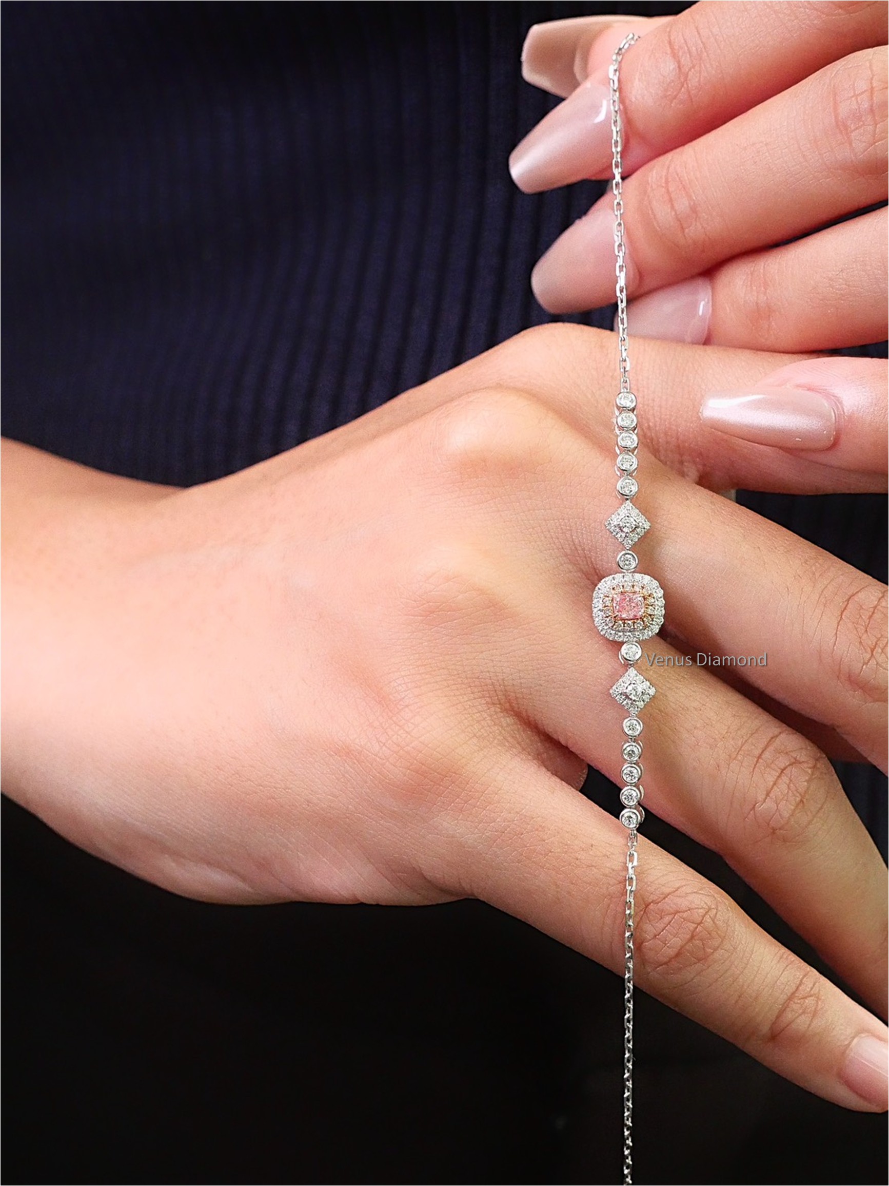 สร้อยข้อมือ Cushion 0.17 ct Light Pinkish Brown ความสะอาด VS2 Very Good Good F GIA 6224591269 Diamond 0.39 ct G.3.31 g