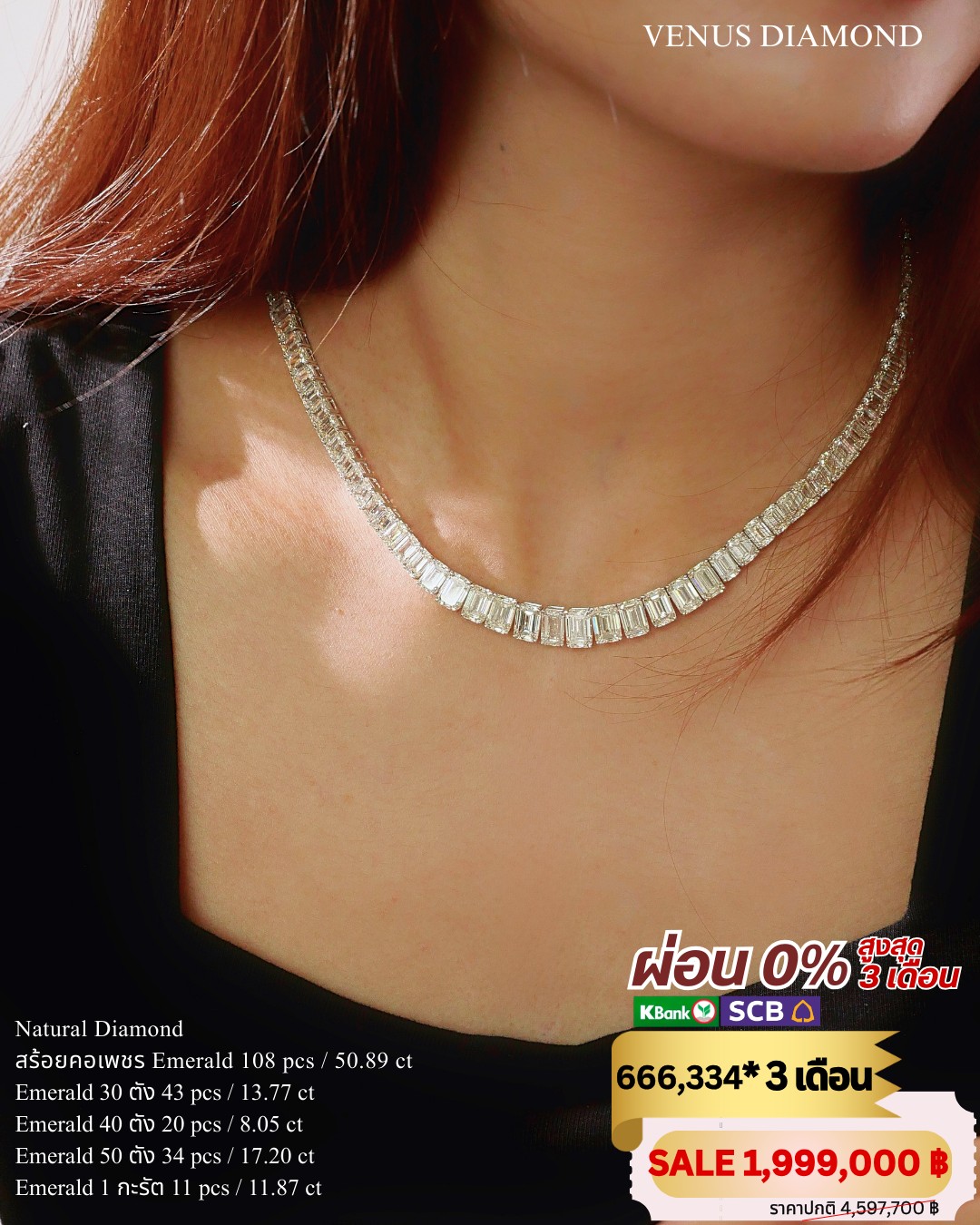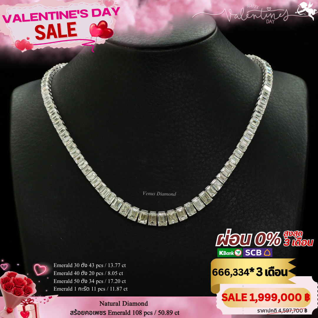 สร้อยคอ 115119/640000 น้ำหนักรวม Emerald 108 pcs 50.89 ct น้ำหนักทอง 31.64 g.