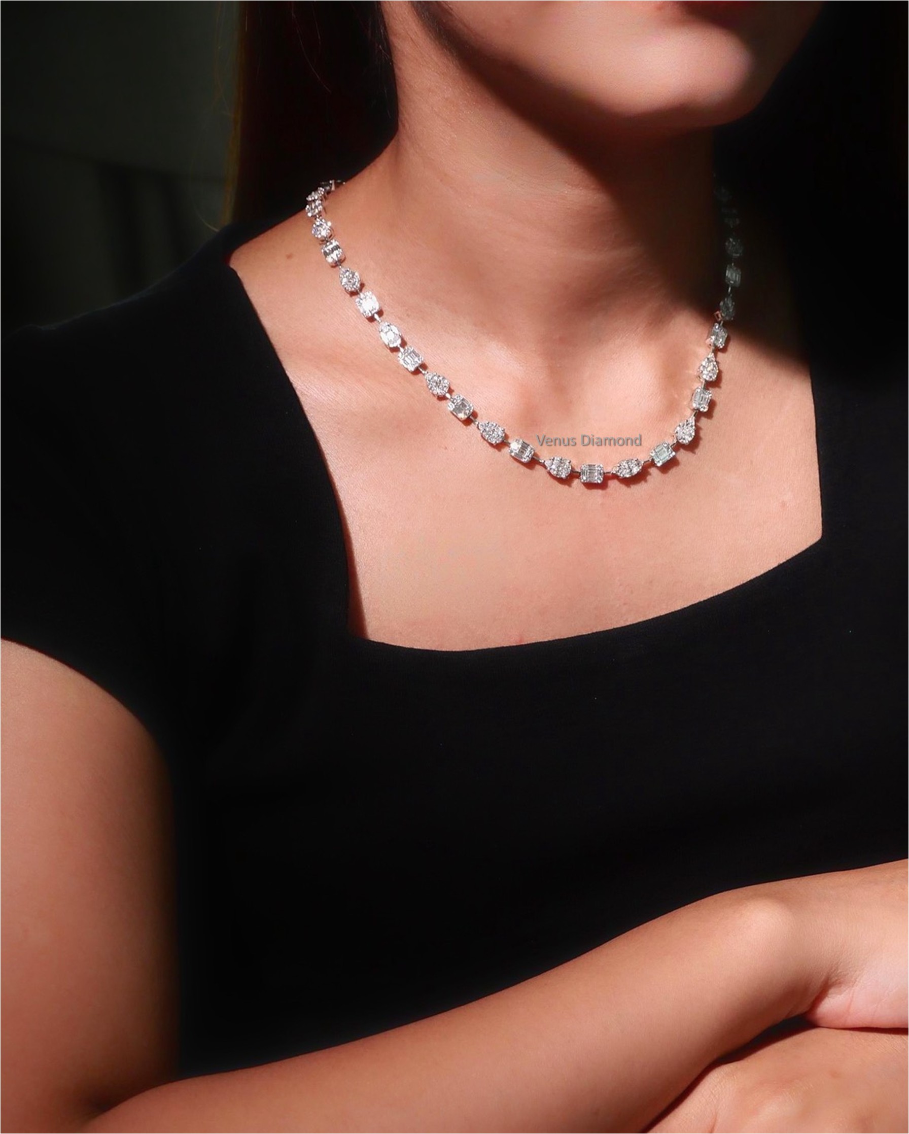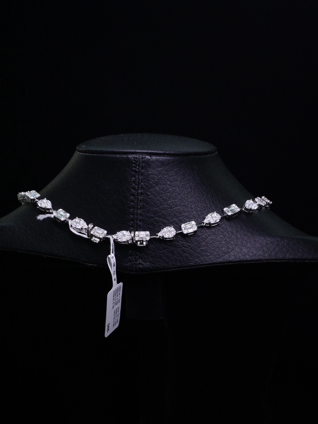 สร้อยคอ N1563A1/133613 Baguette 40 / 1.030 ct Baguette 80 / 2.339 ct Marquise 2 / 0.240 ct Marquise 57 / 4.185 ct Pear 19 / 1.640 ct Princess 21 / 1.233 ct Round 80 / 0.890 ct white gold 18k. 28.48 g.