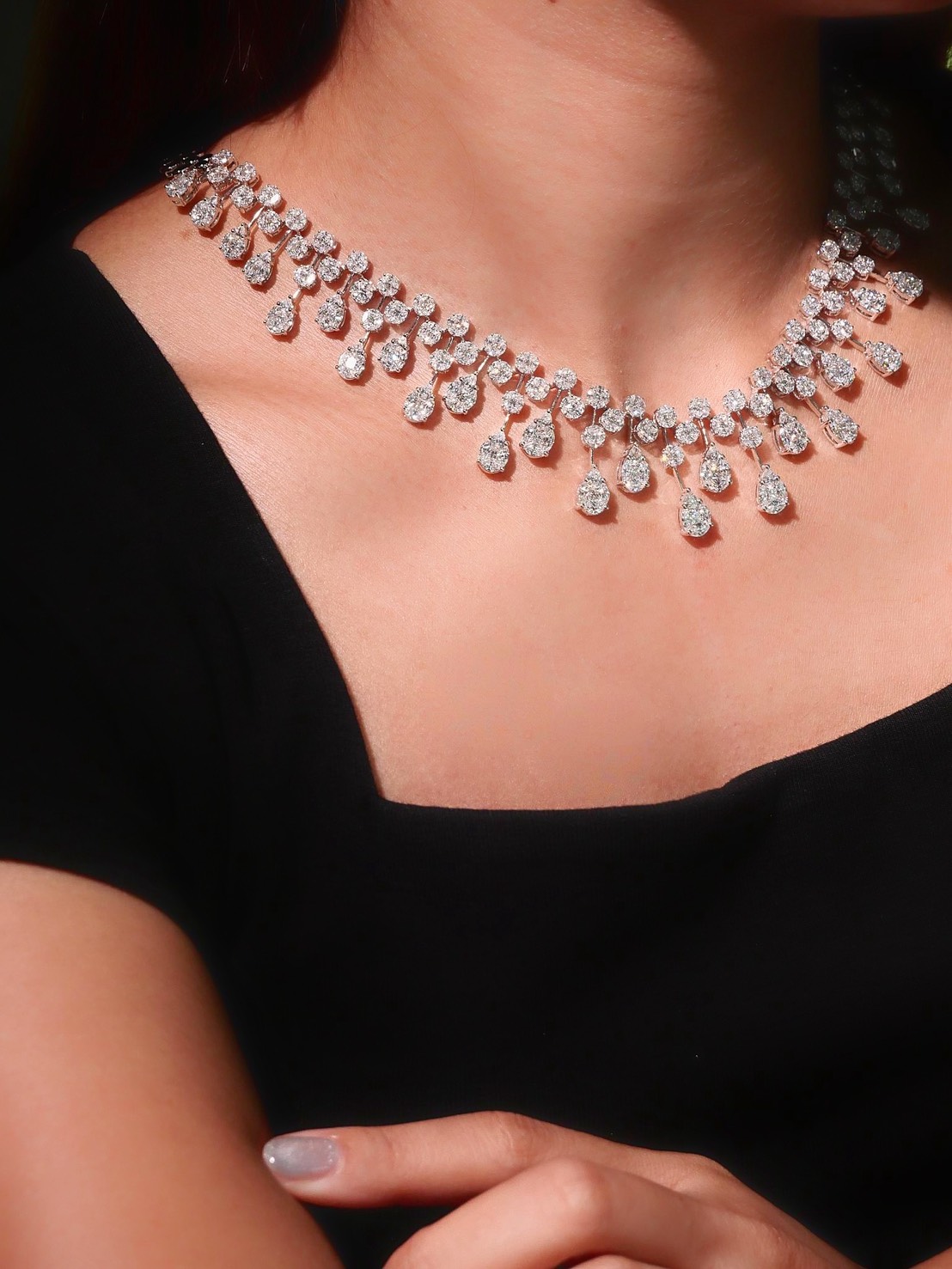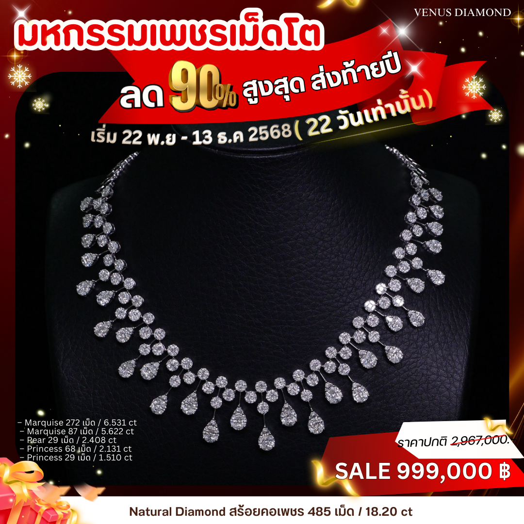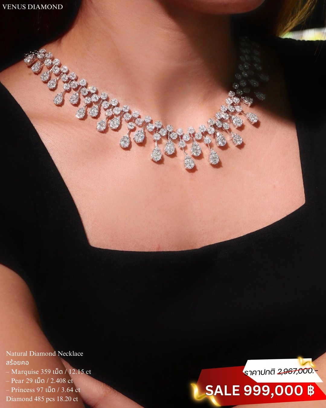 สร้อยคอ N1562A2/133626 Marquise 272 / 6.531 ct Marquise 87 / 5.622 ct Pear 29 / 2.408 ct Princess 68 / 2.131 ct Princess 29 / 1.510 ct white gold 18k. 58.83 g