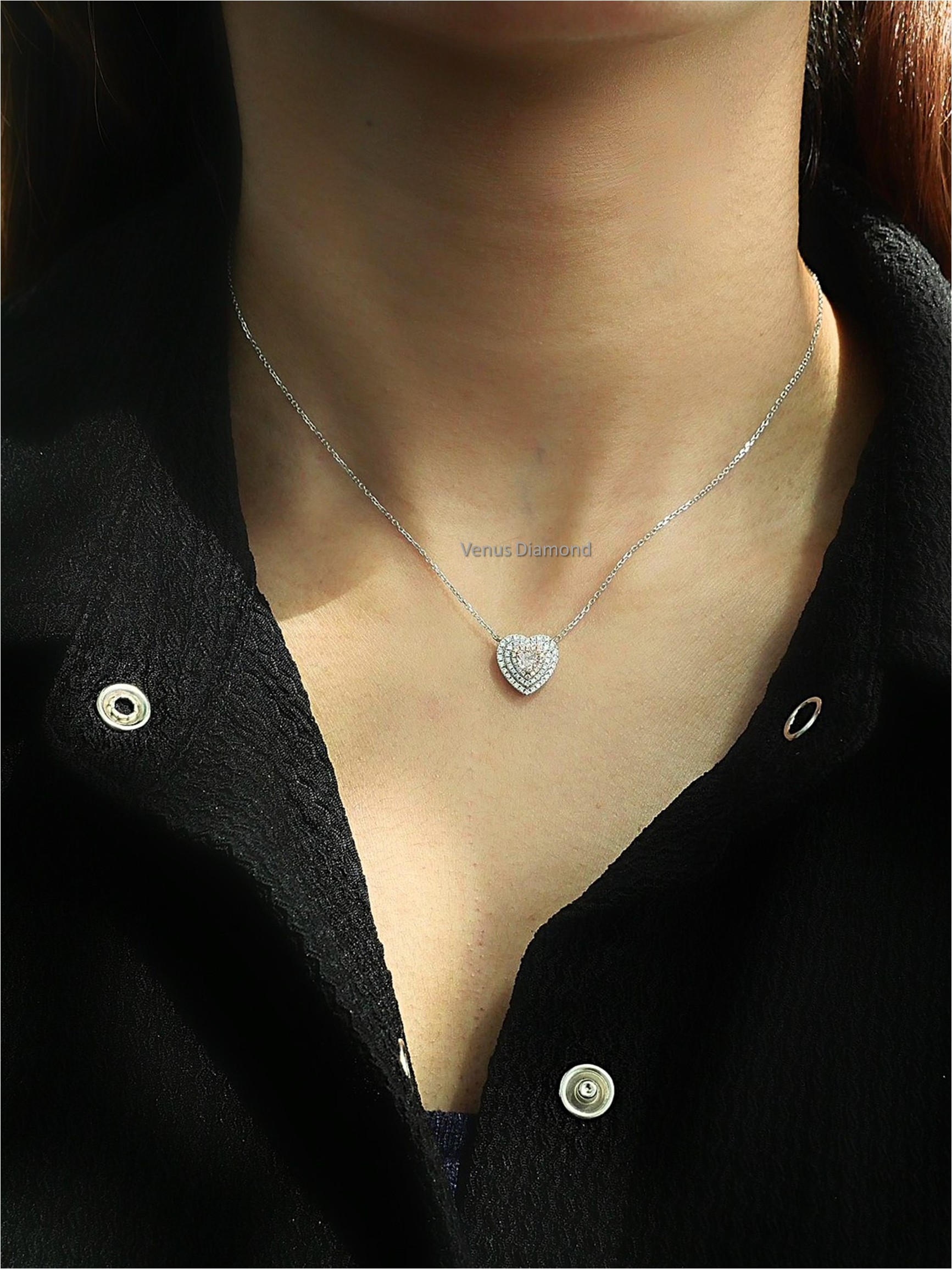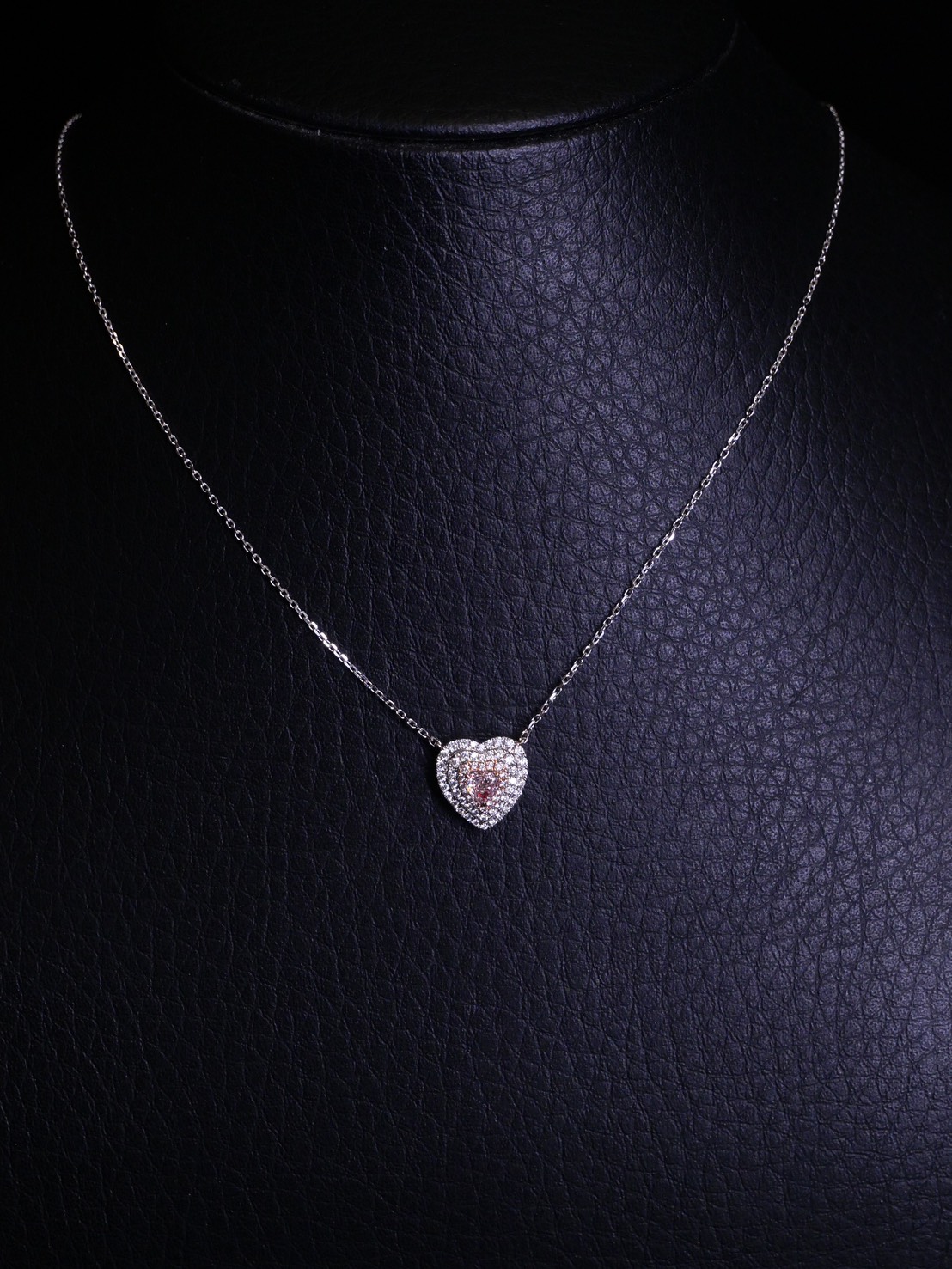 สร้อยคอเพชร Heart 0.22 ct Light Pinkish Brown ความสะอาด VS2 2G N GIA 5211130552 Round 0.24 ct white gold 18k 3.06 g.