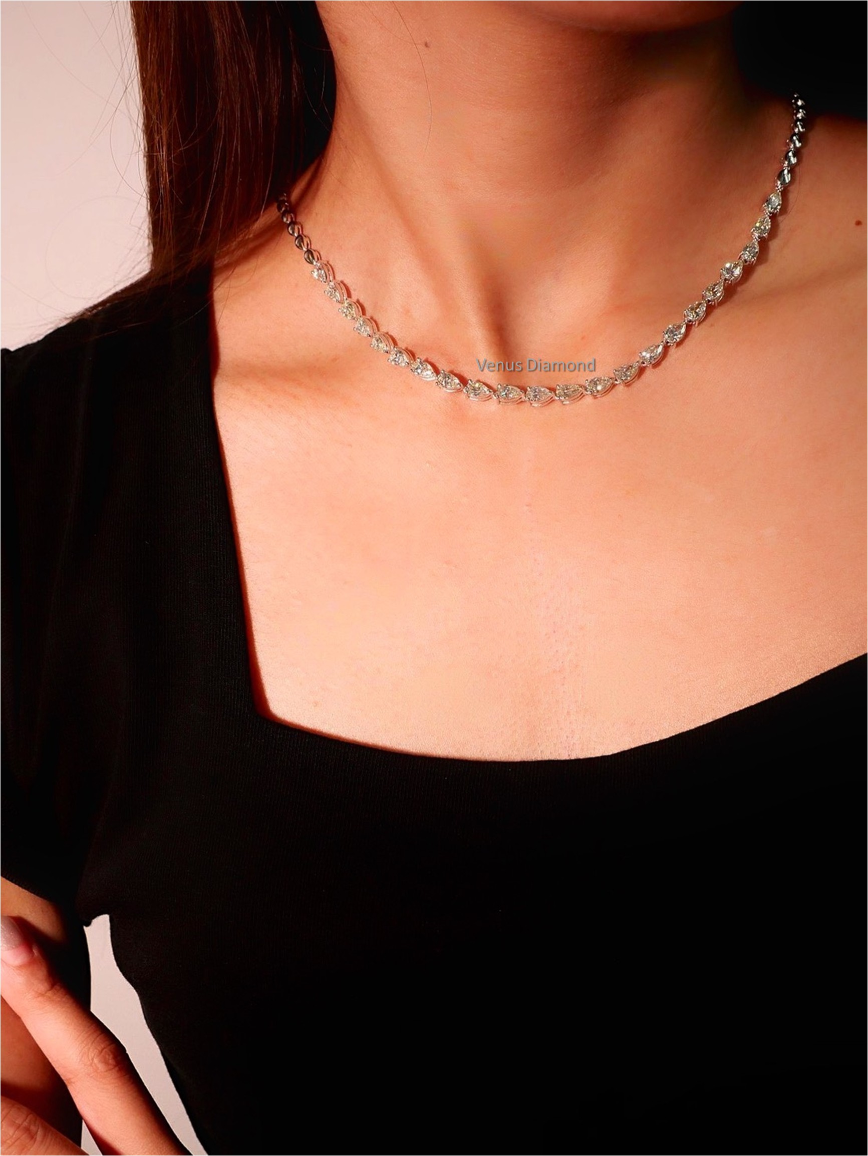 สร้อยคอเพชร Pear 22 pcs / 7.00 ct สี G H ความสะอาด VVS VS