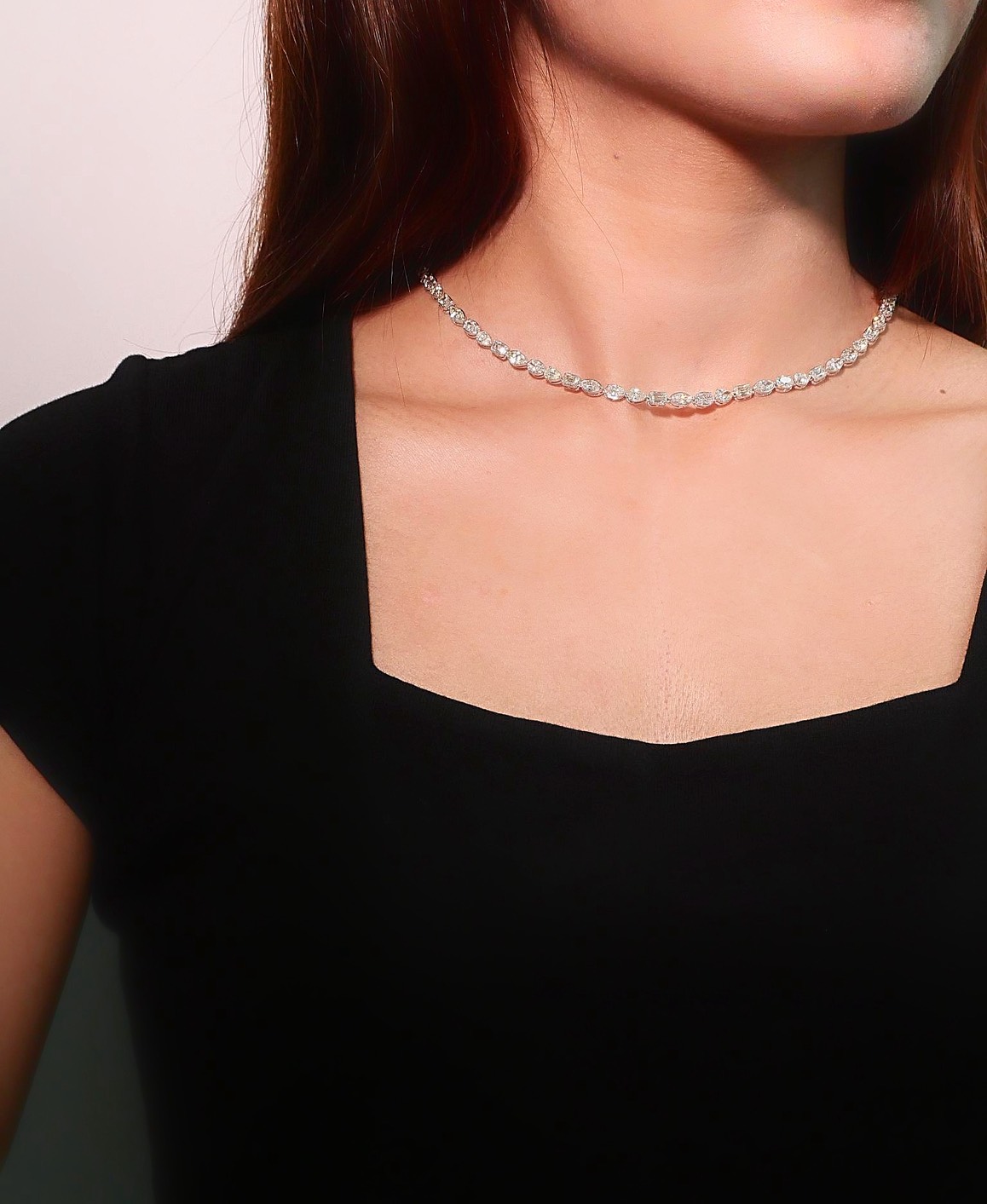 สร้อยคอเพชร Pear Marquise Oval Emerald น้ำหนักเพชร รวม 10.75 ct / 52 Pcs สี F ความสะอาด VVS VS ใบเซอร์ HKD 2025060510312DJTH