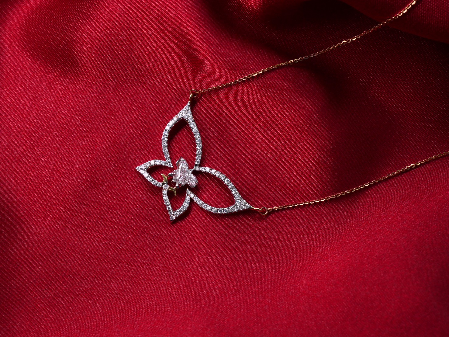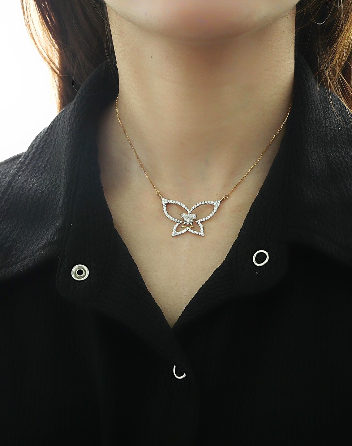 สร้อยคอ Butterfly step cut 0.86 ct สี G ความสะอาด VVS1 ใบเซอร์ GIA