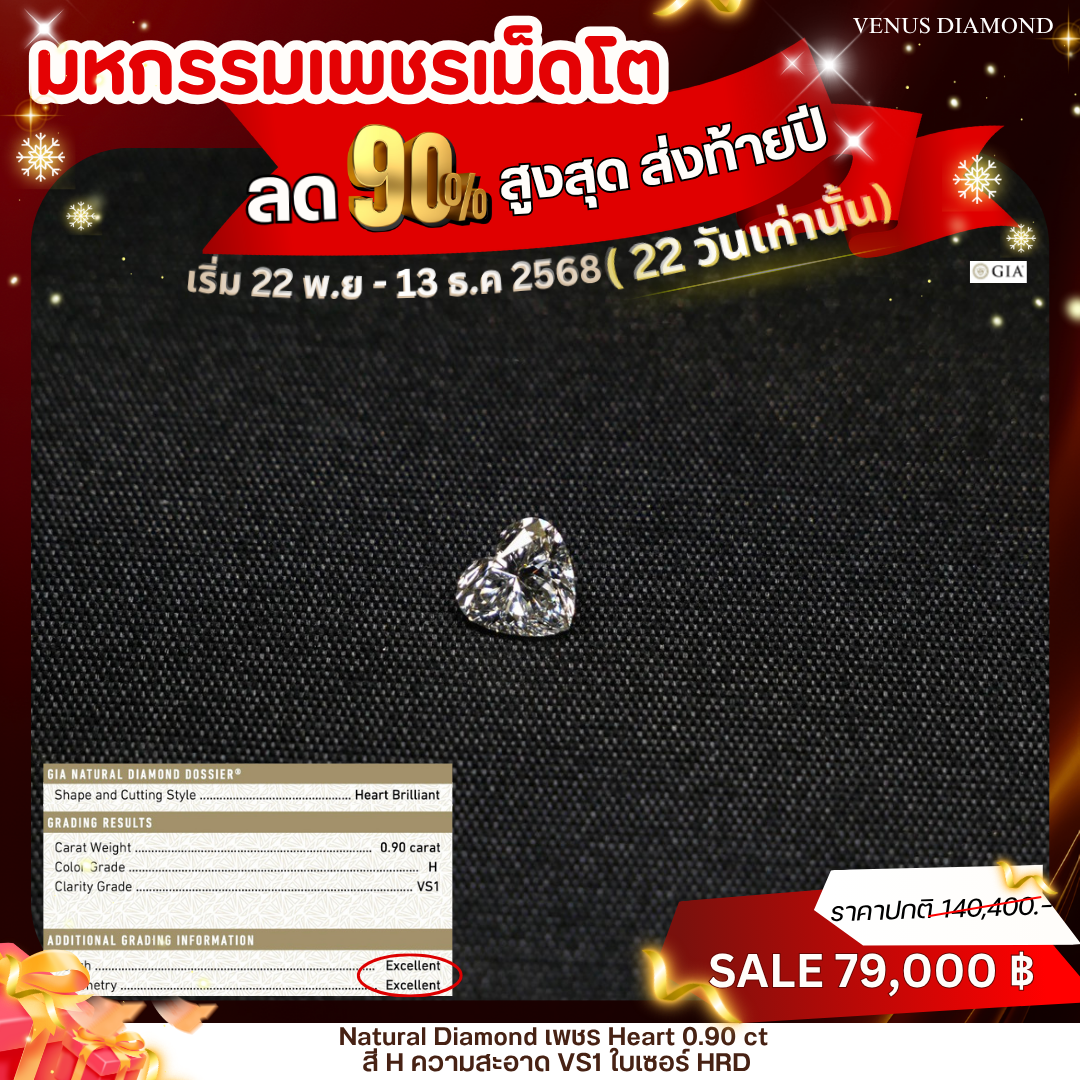 เพชร Heart น้ำหนักเพชร 0.90 กะรัต